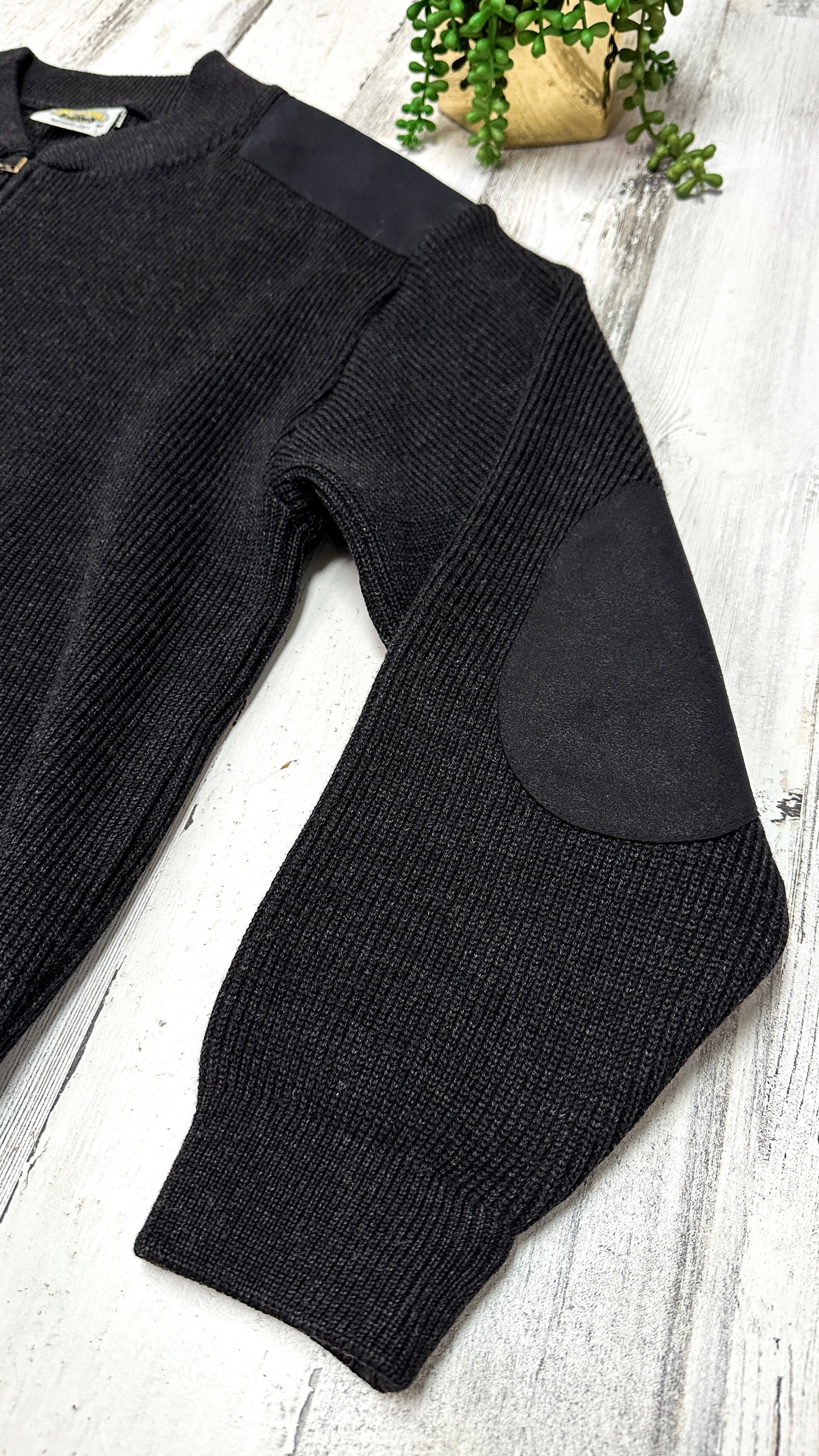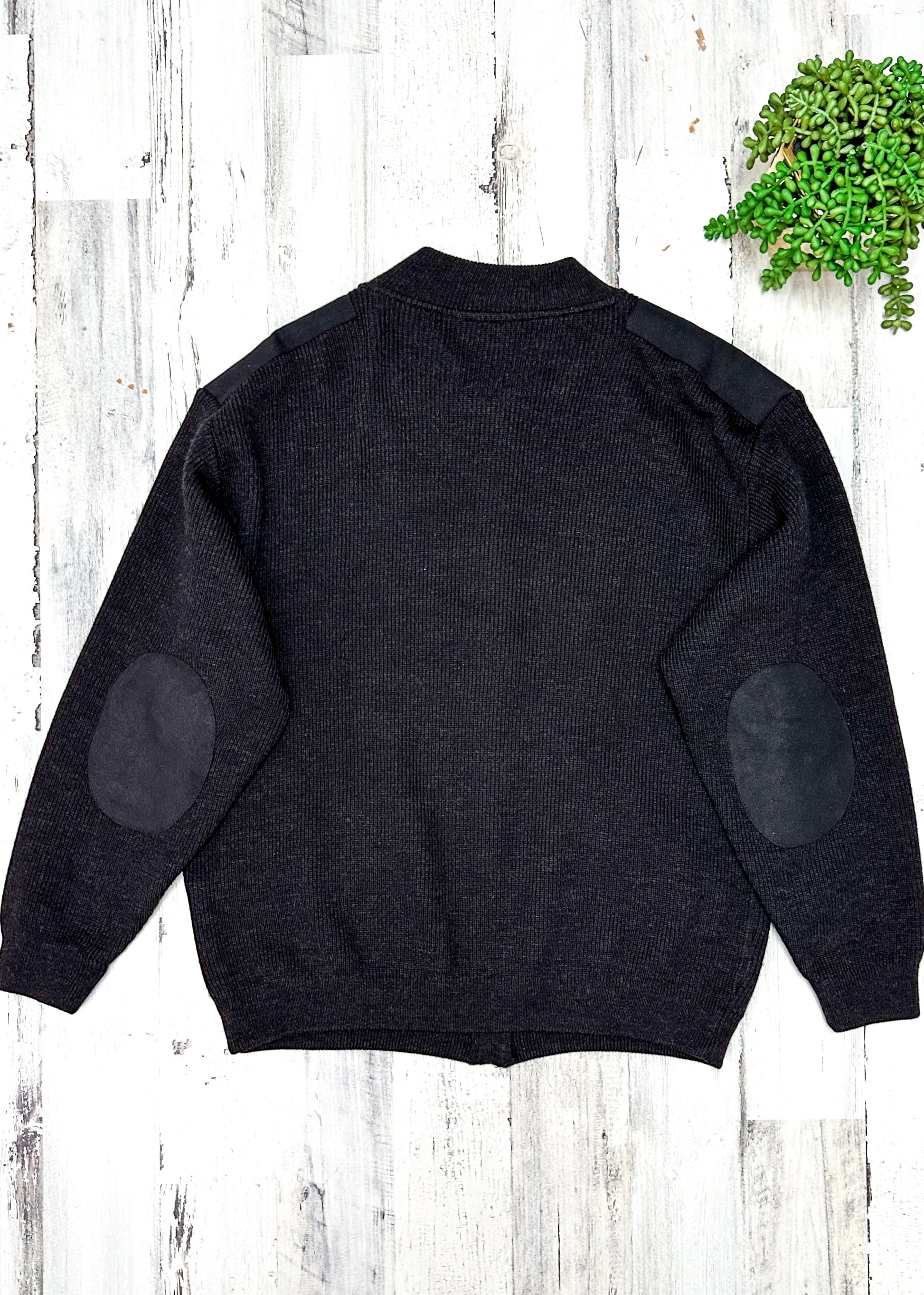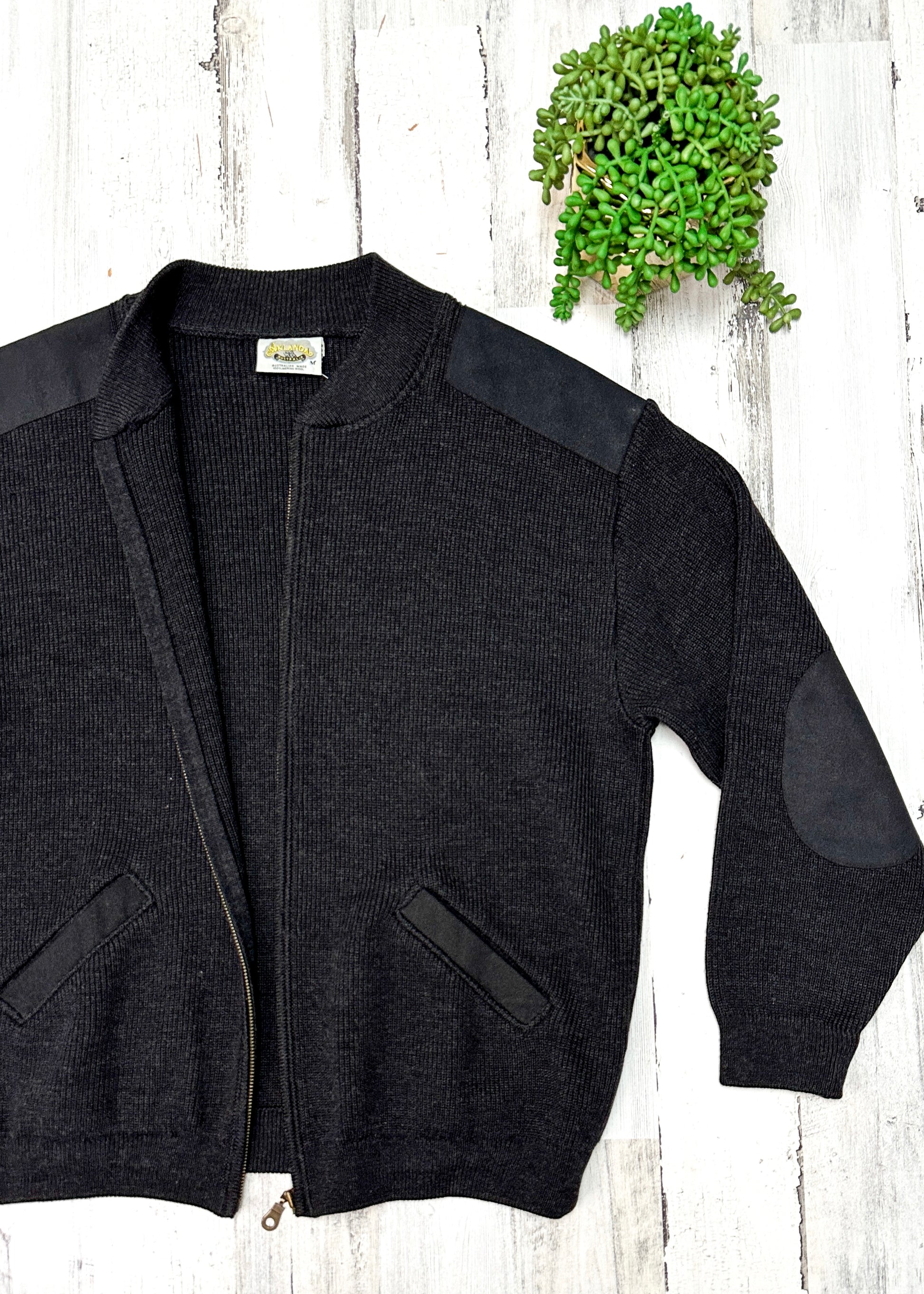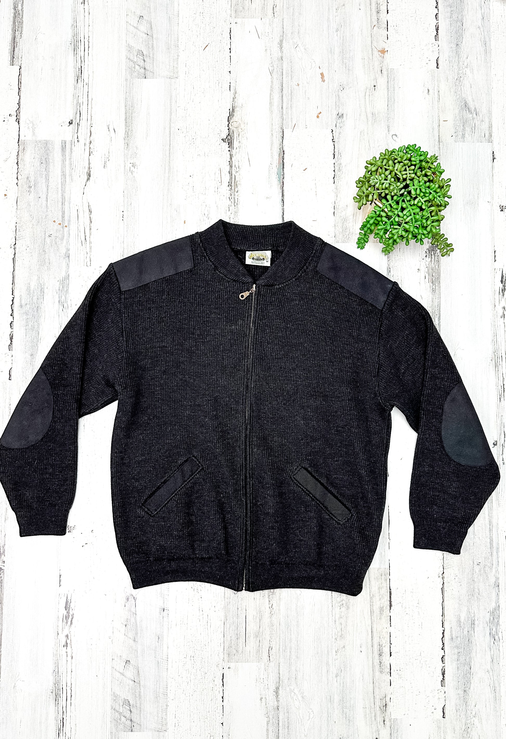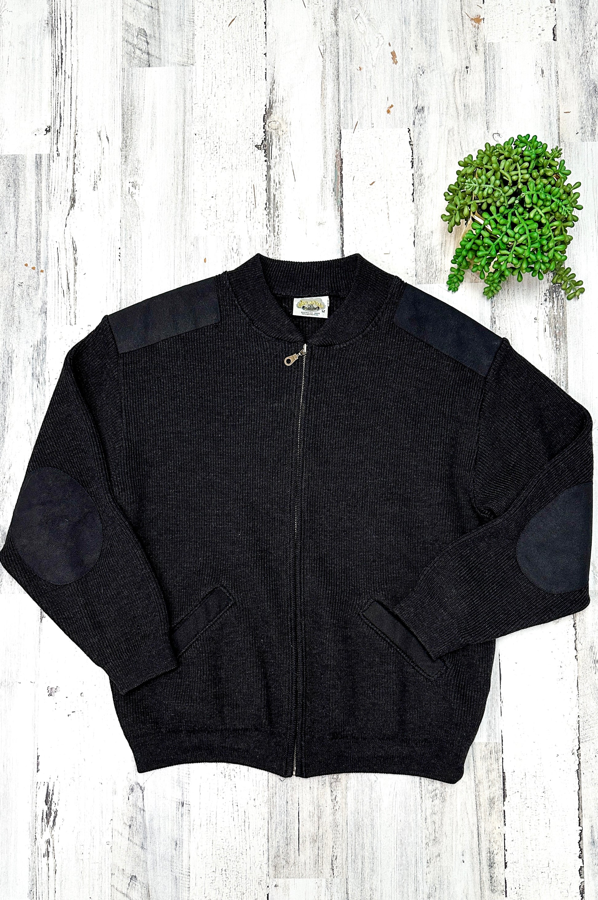 HOW TO STYLE/DETAILS: Beautiful 100% Australian Merino wool knit cardigan is technically mens, but we love it kind of slouchy on us ladies. This is a heavy weight stitch knit with and faux suede trim pockets, elbow patches and shoulder trim.