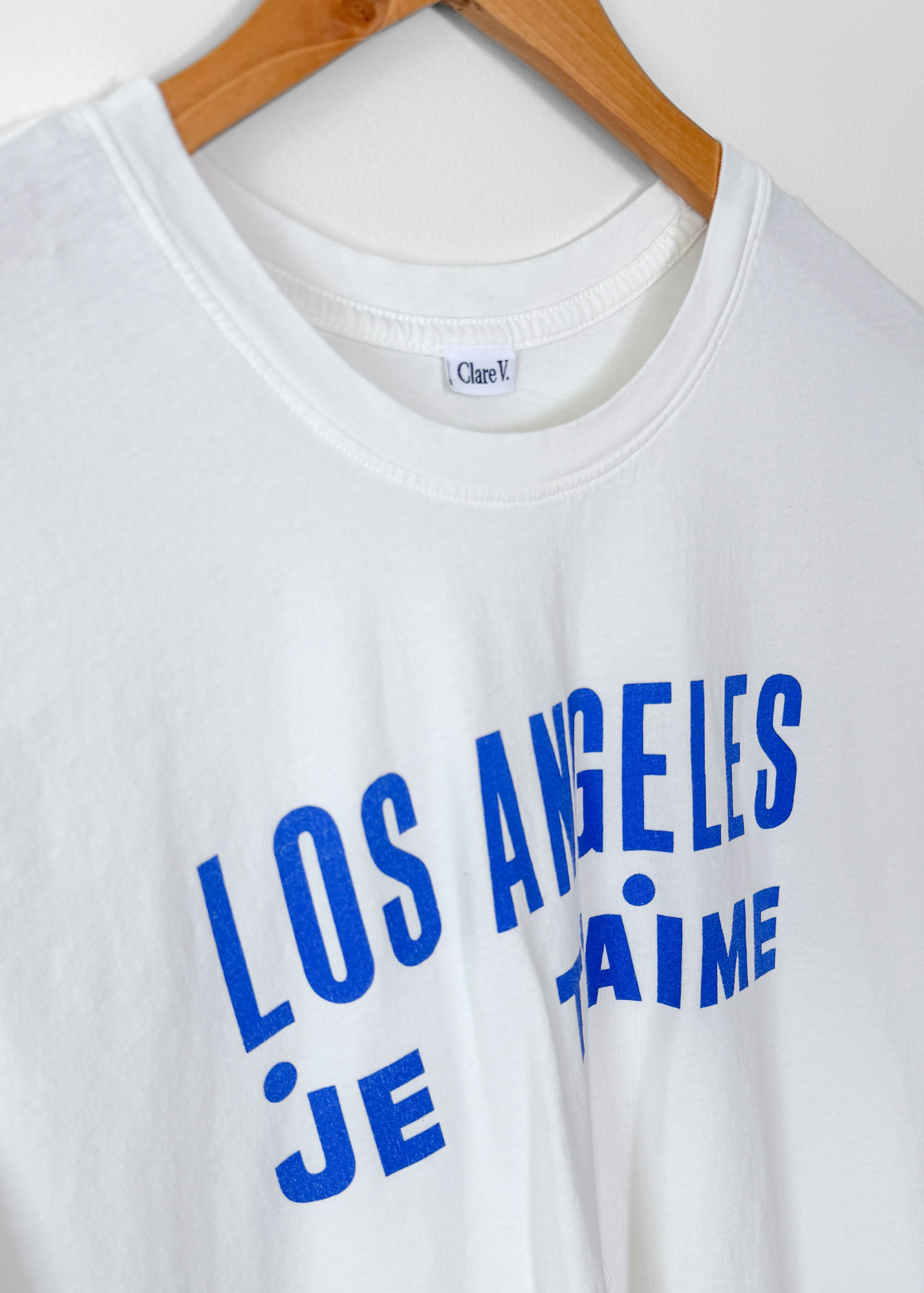 DETAILS: relaxed tee from luxury brand Clare V. with "Los Angeles I love you" in french printed in blue.