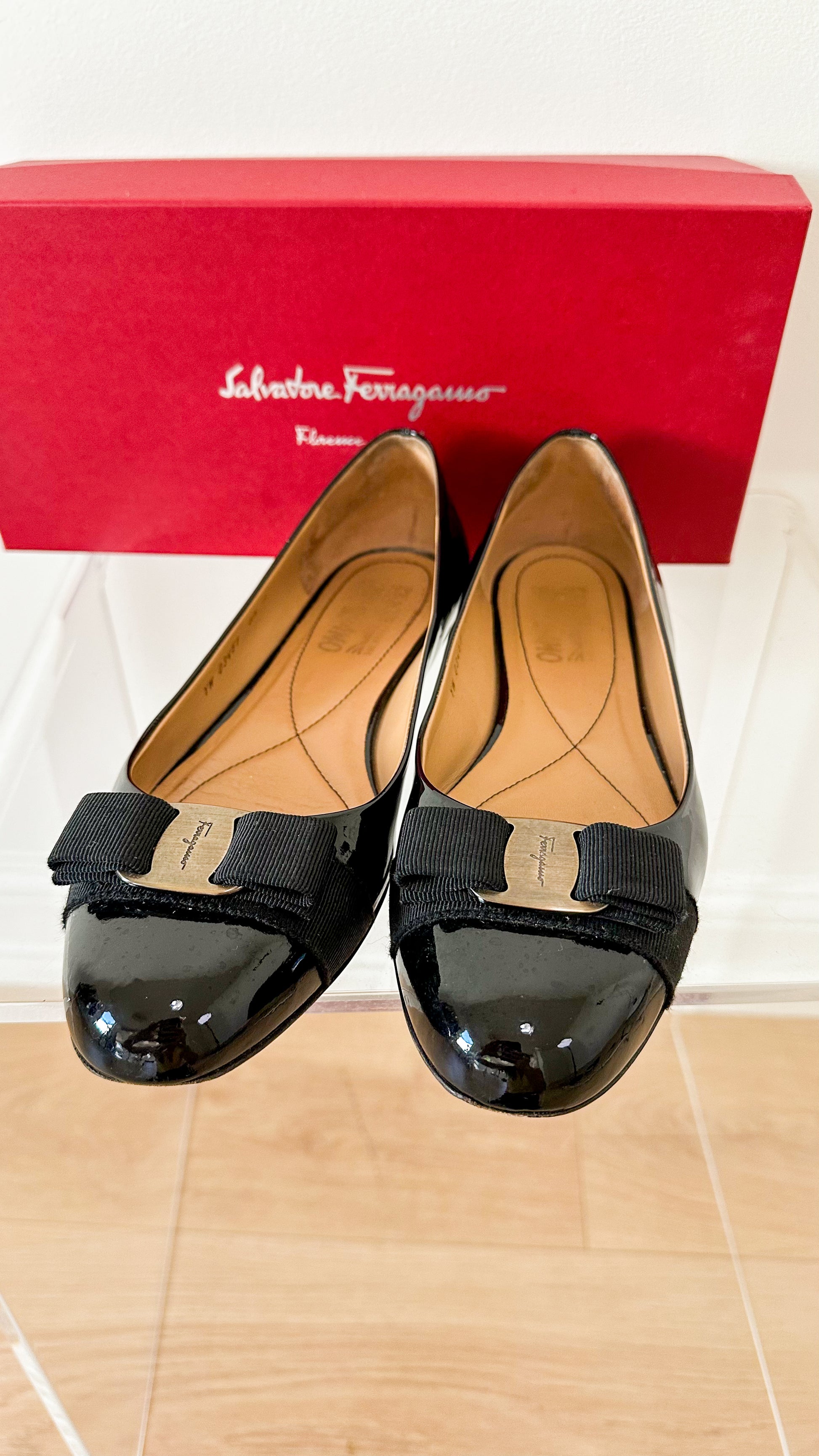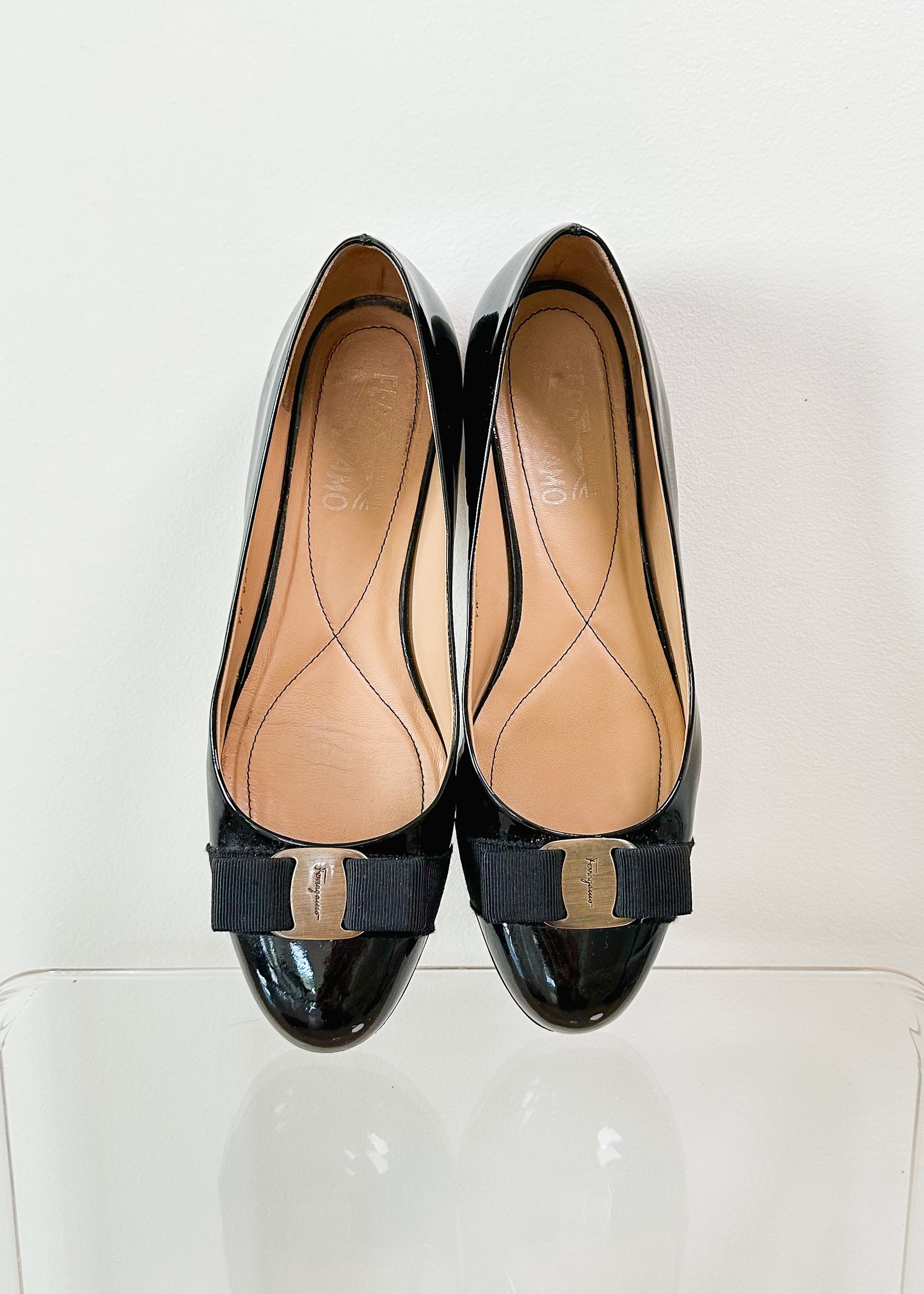 Ferragamo Varina Black Patent Leather Bow Ballet Flats (9 - 9.5)