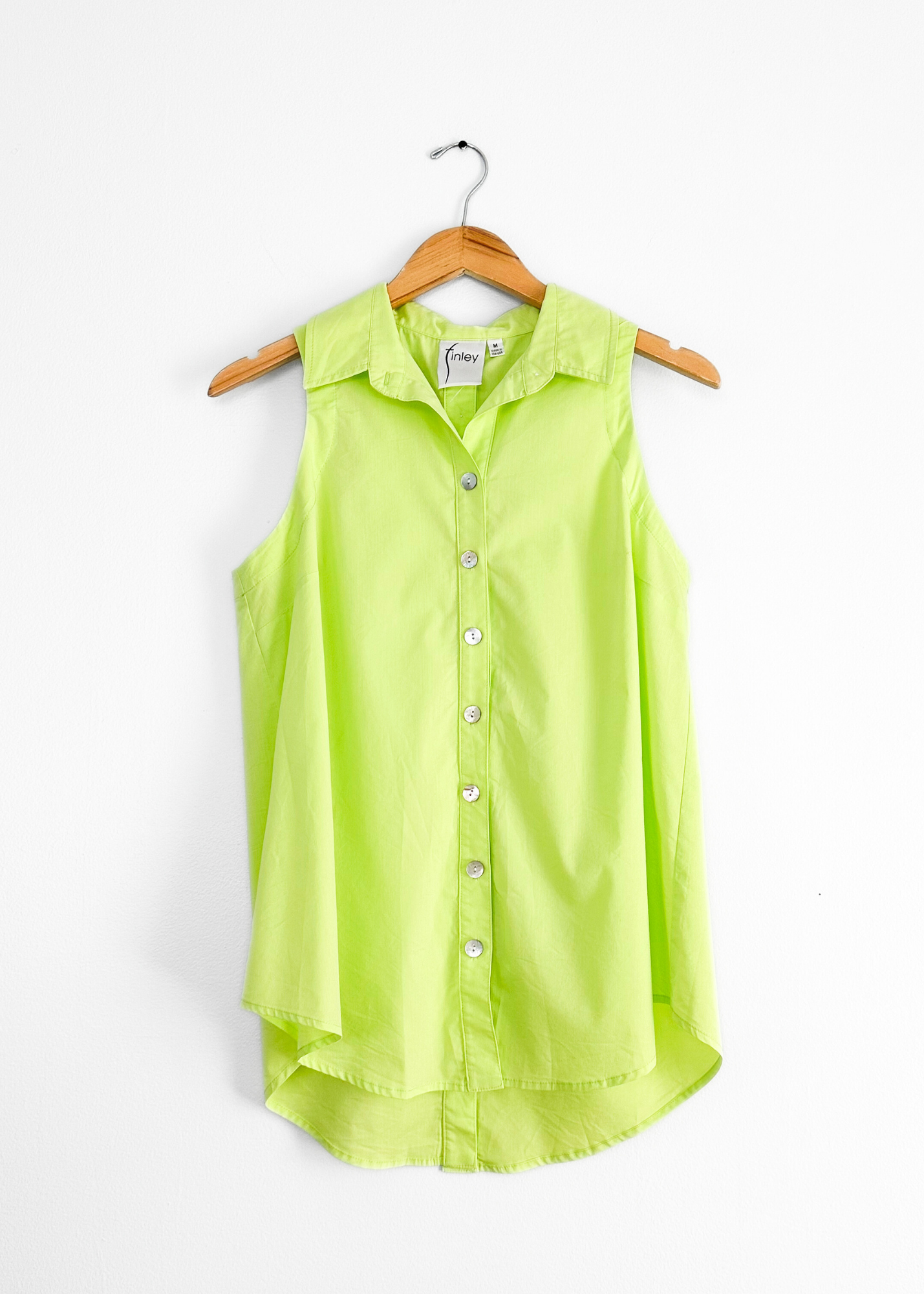 Finley Sleeveless Button Down Top in Limeade Bright Green (M)