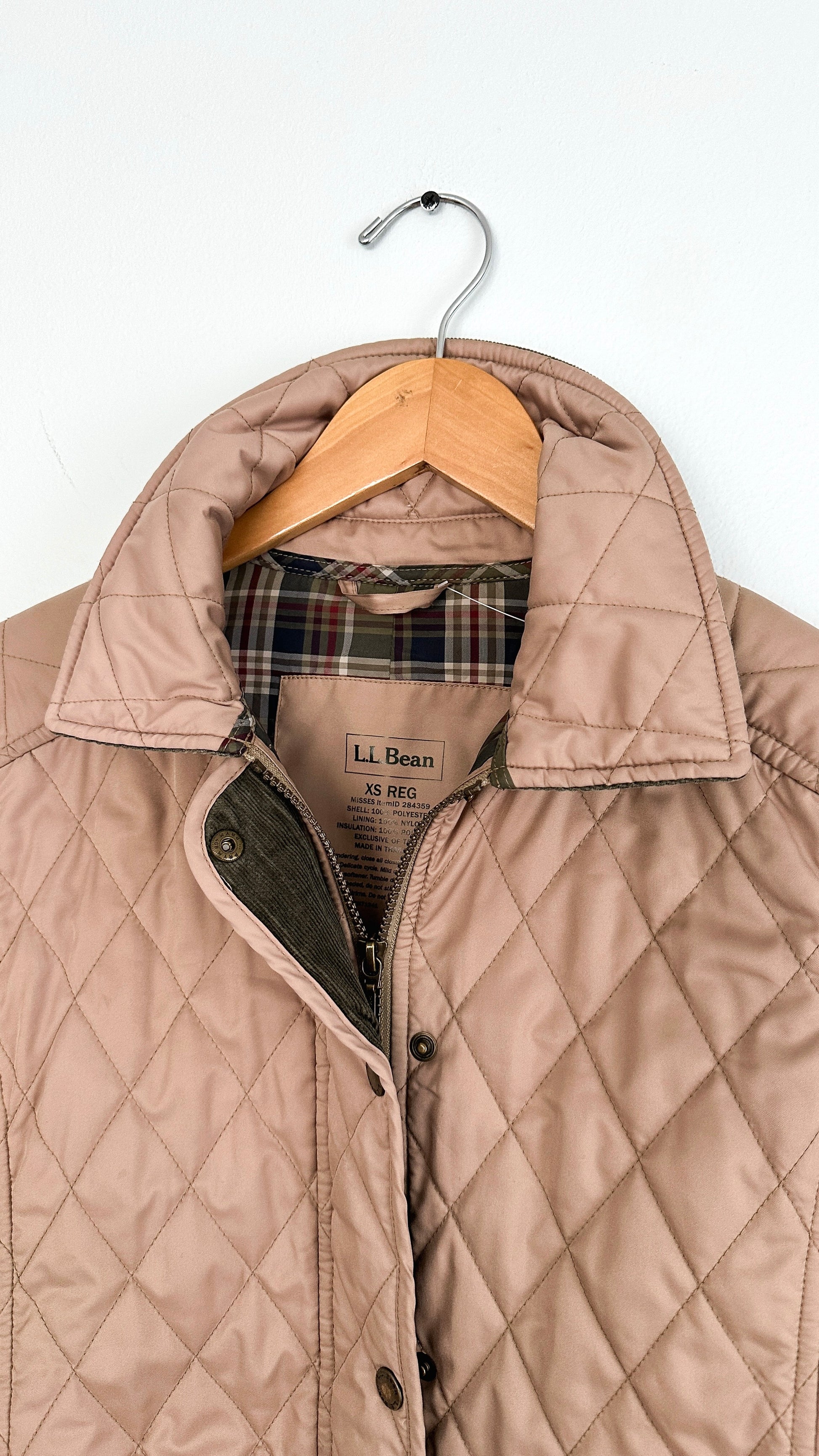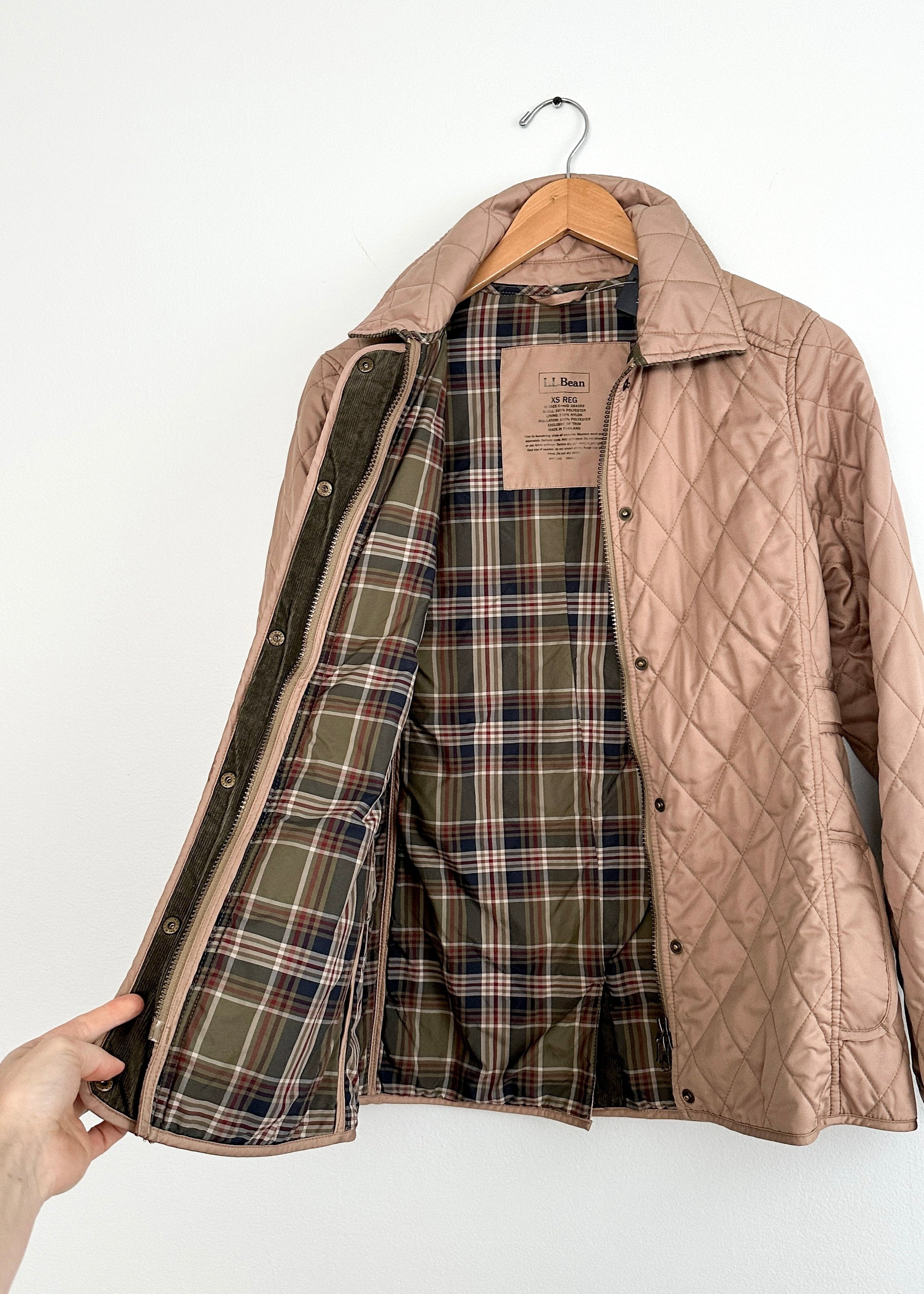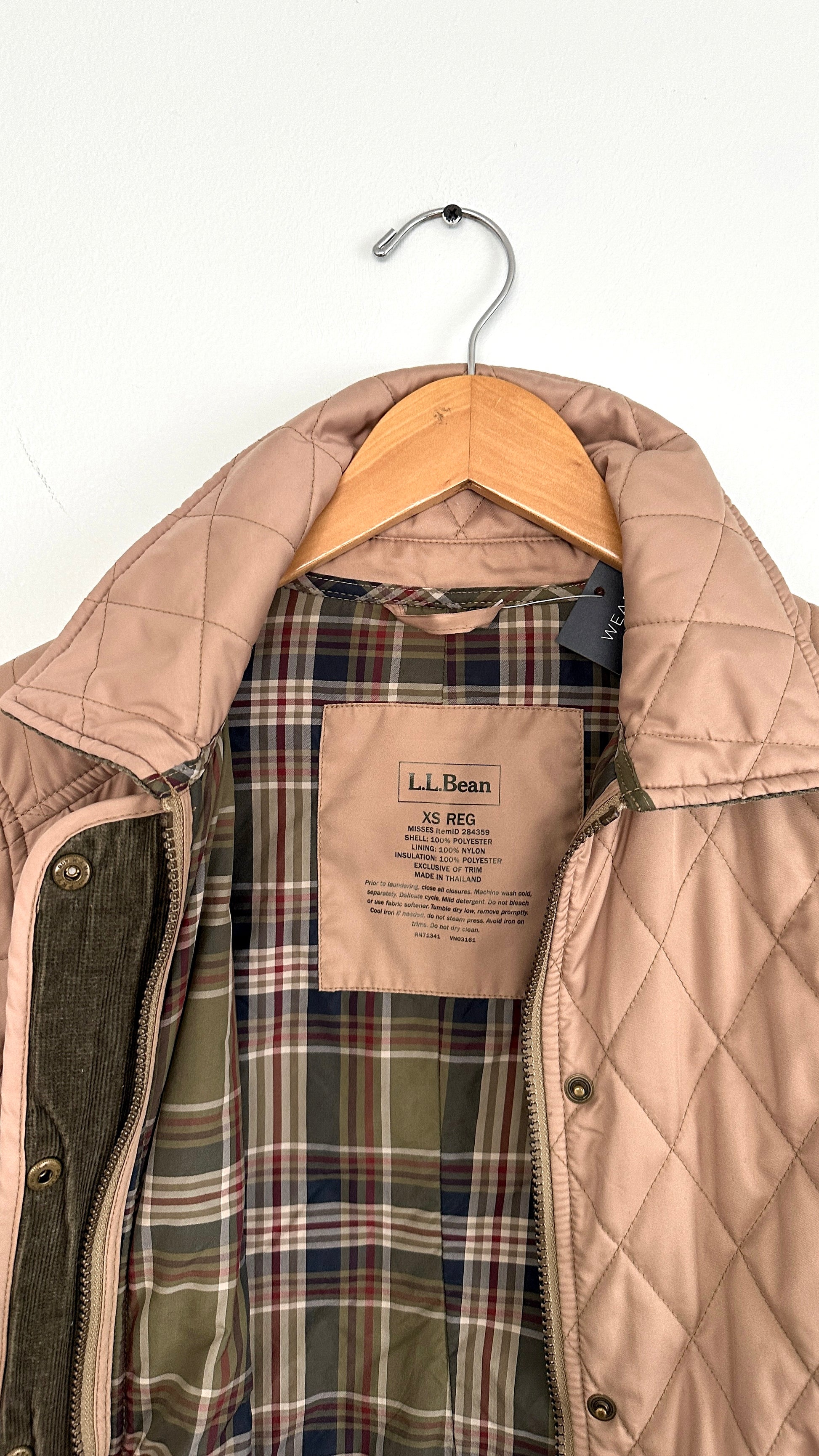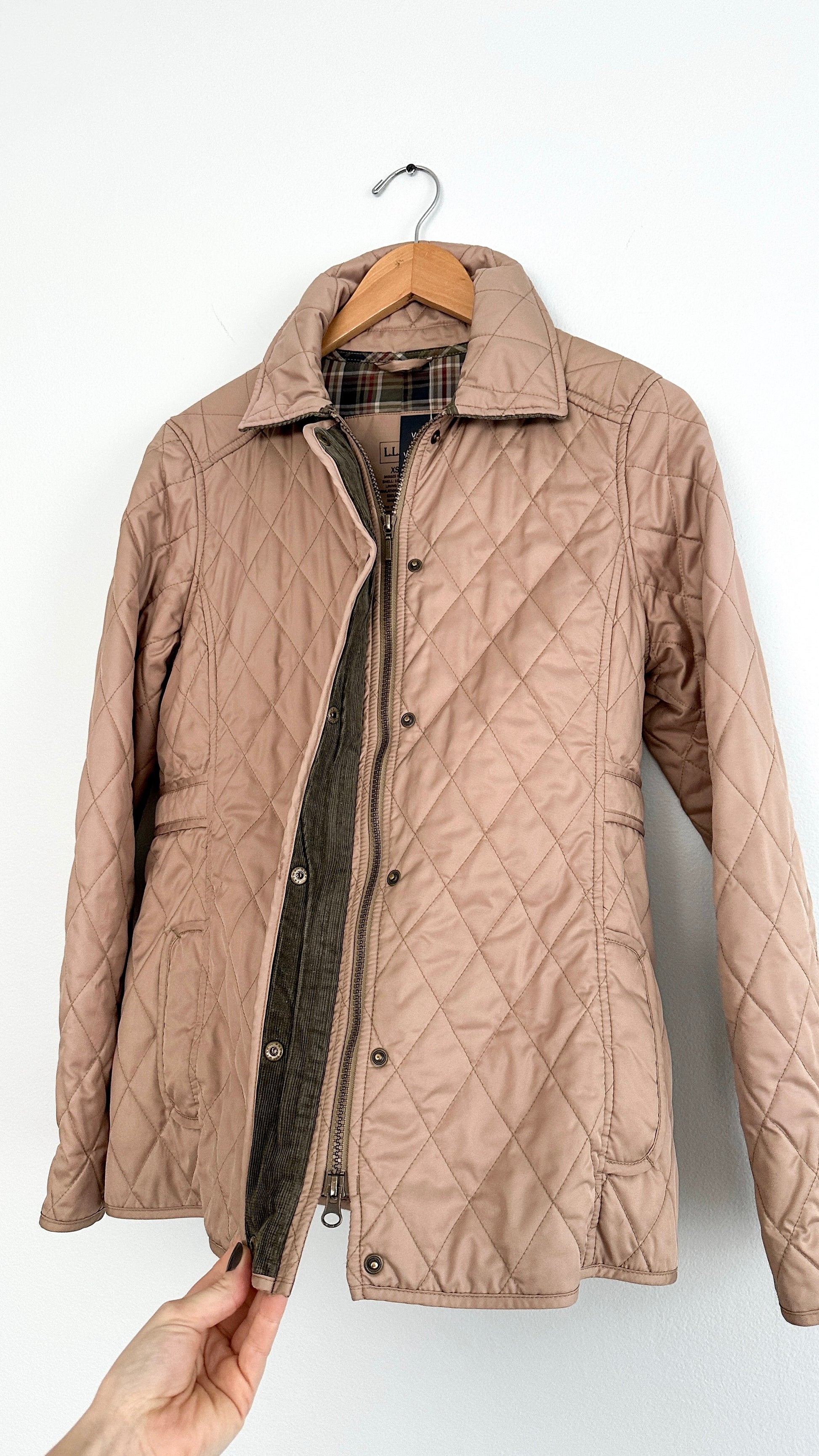 L.L. Bean Khaki Light Brown Quilted Green Corduroy Trim Riding Chore Jacket