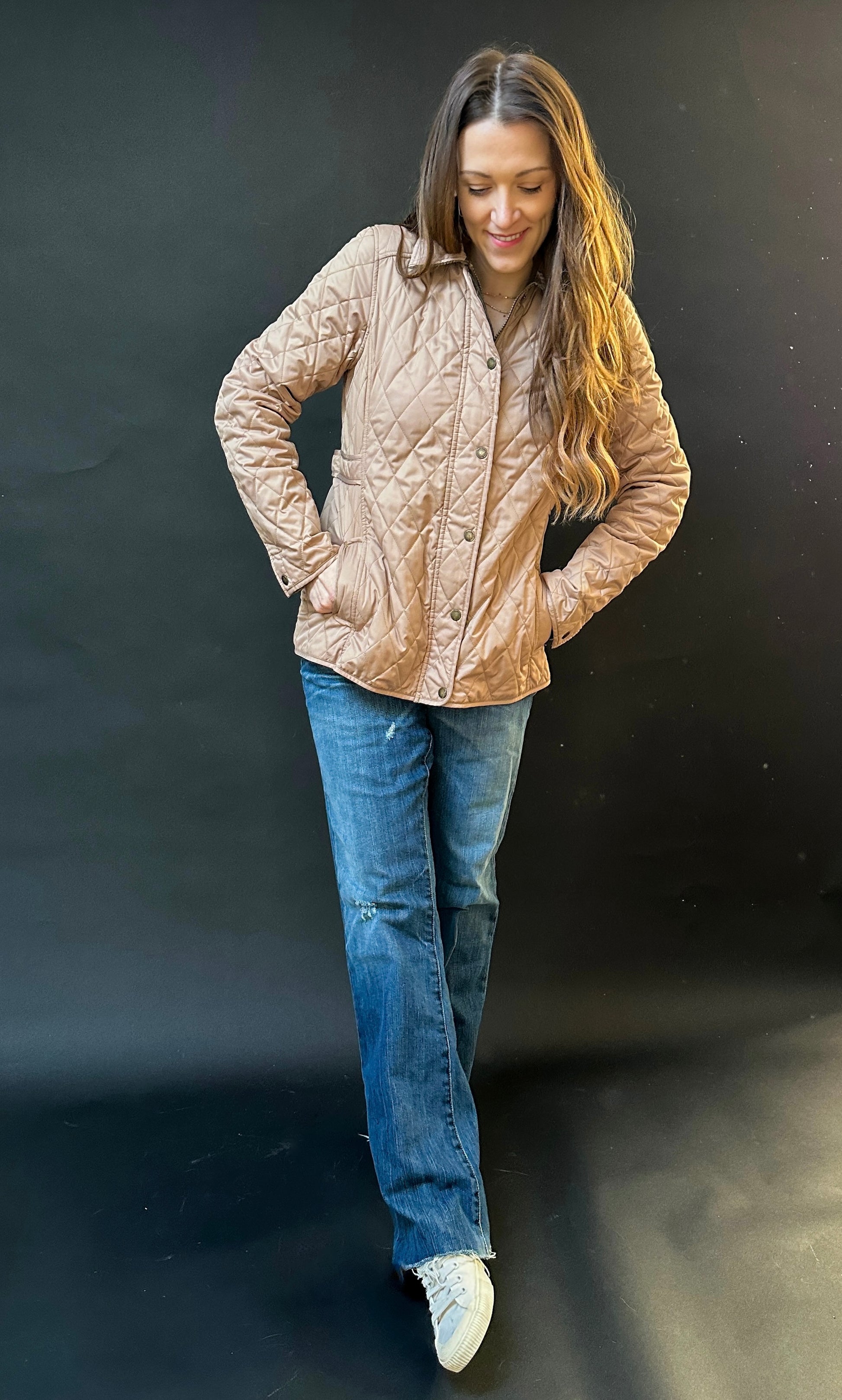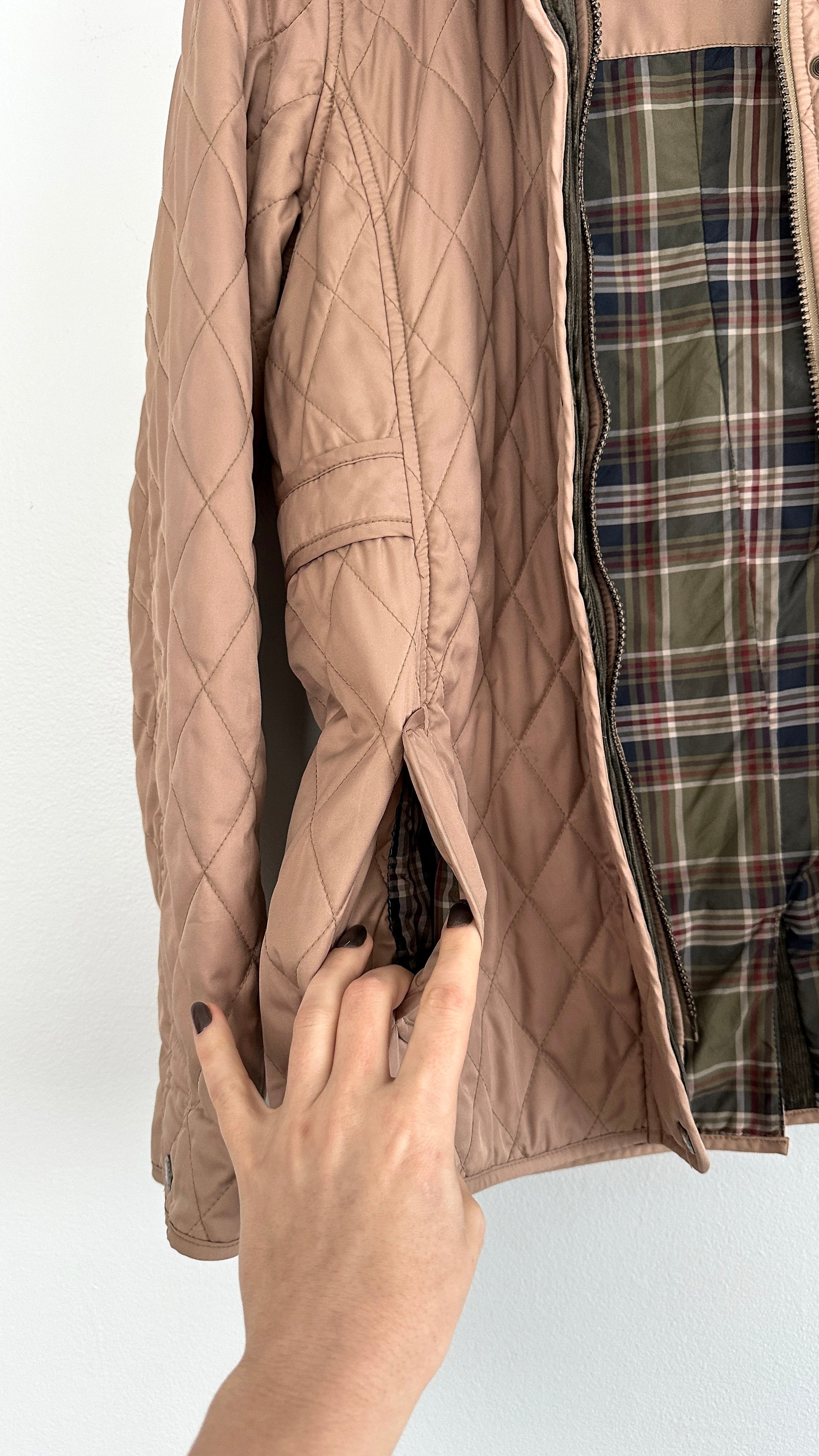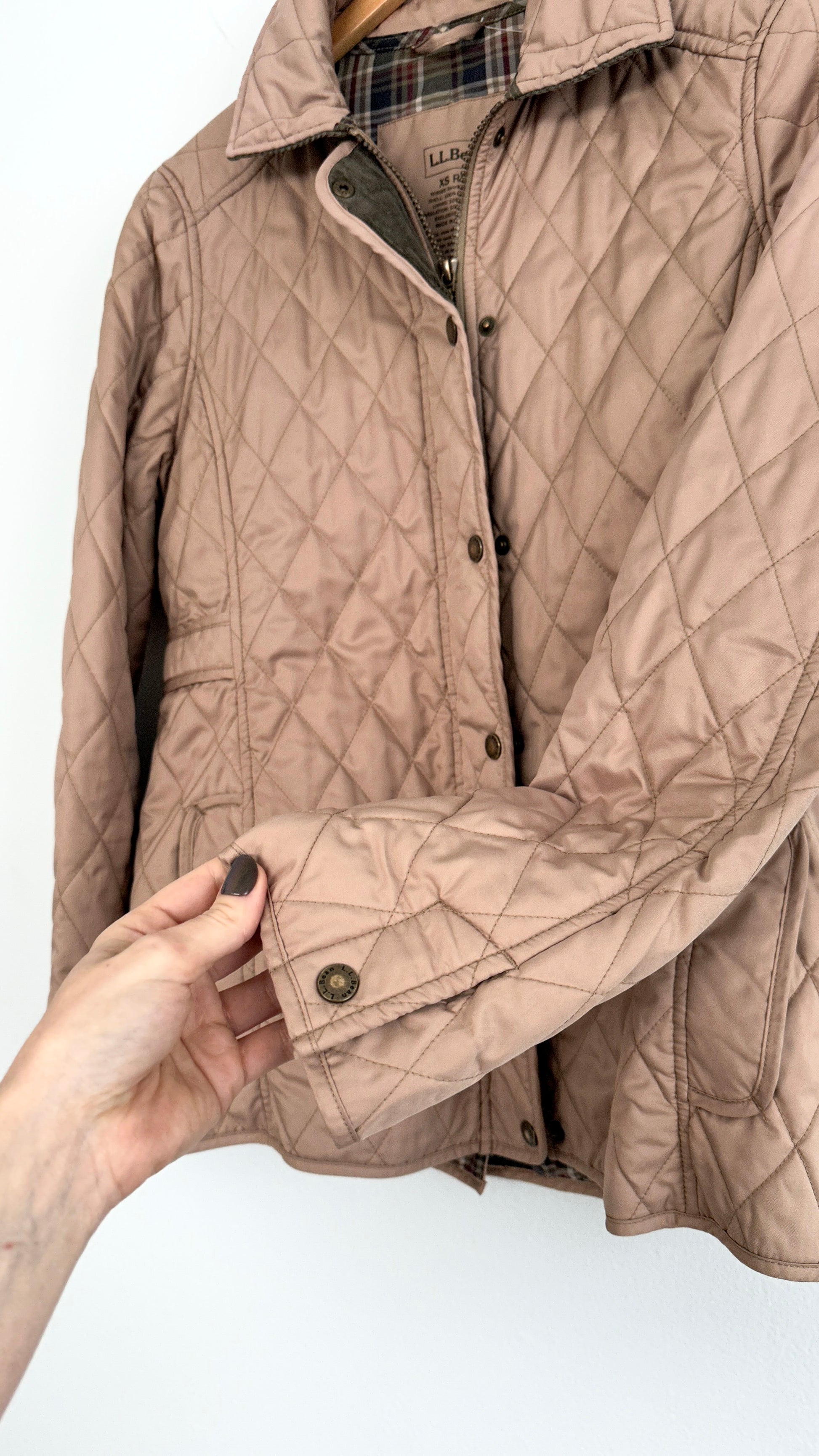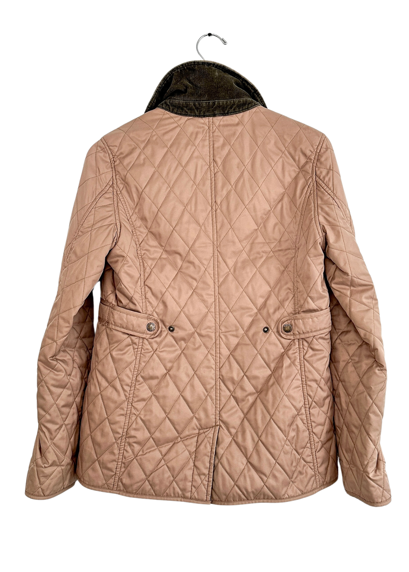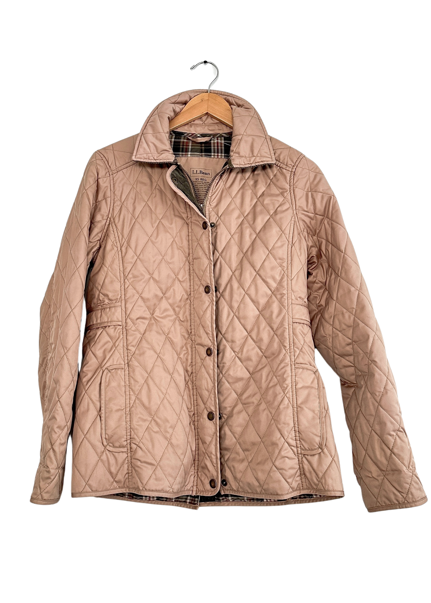 L.L. Bean Khaki Light Brown Quilted Green Corduroy Trim Riding Chore Jacket