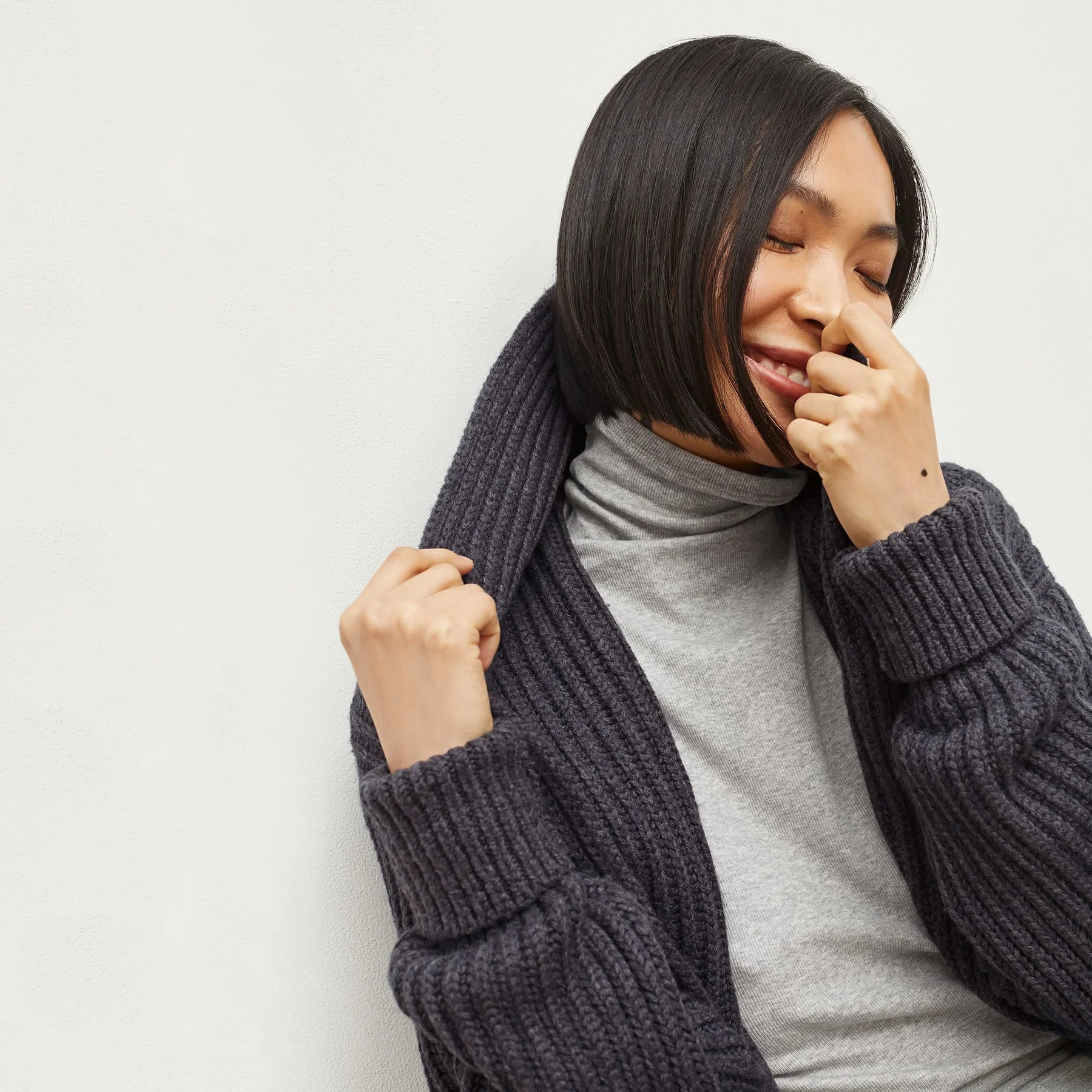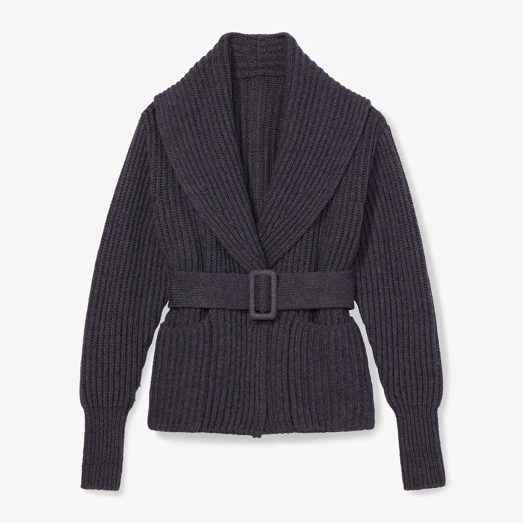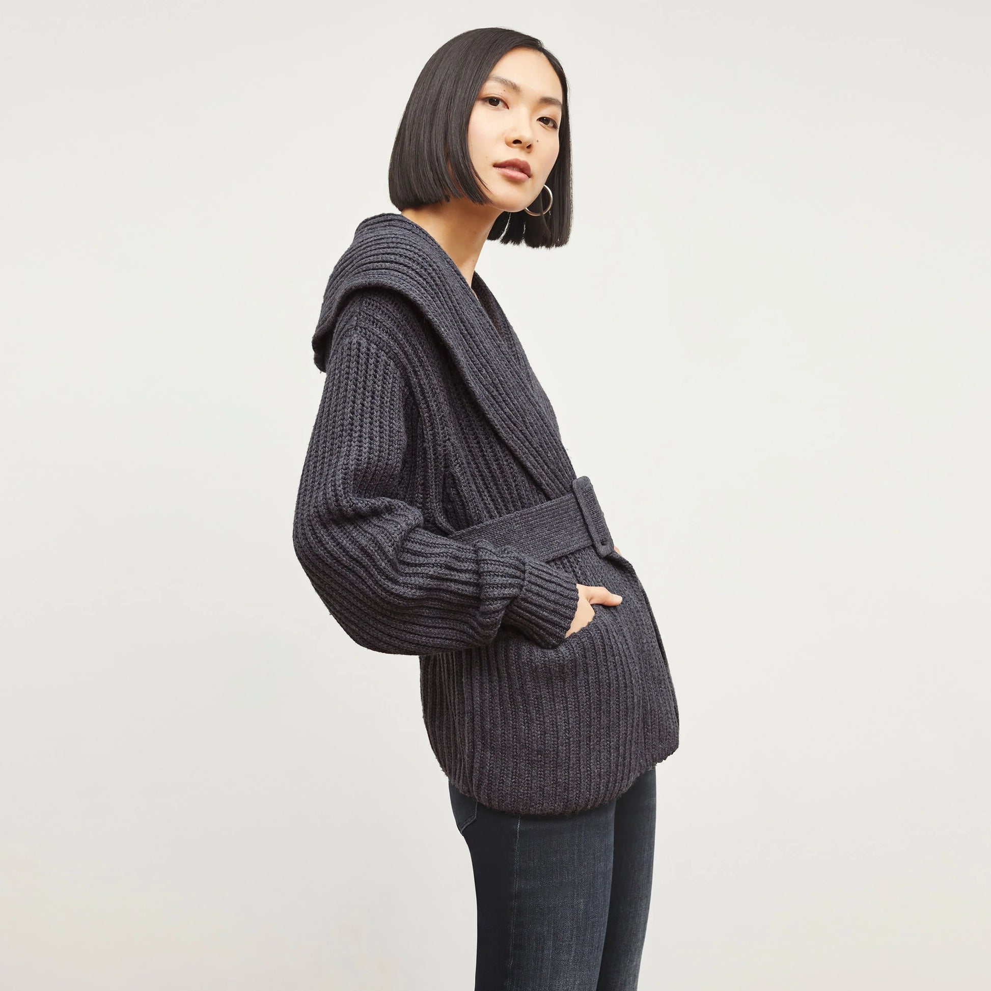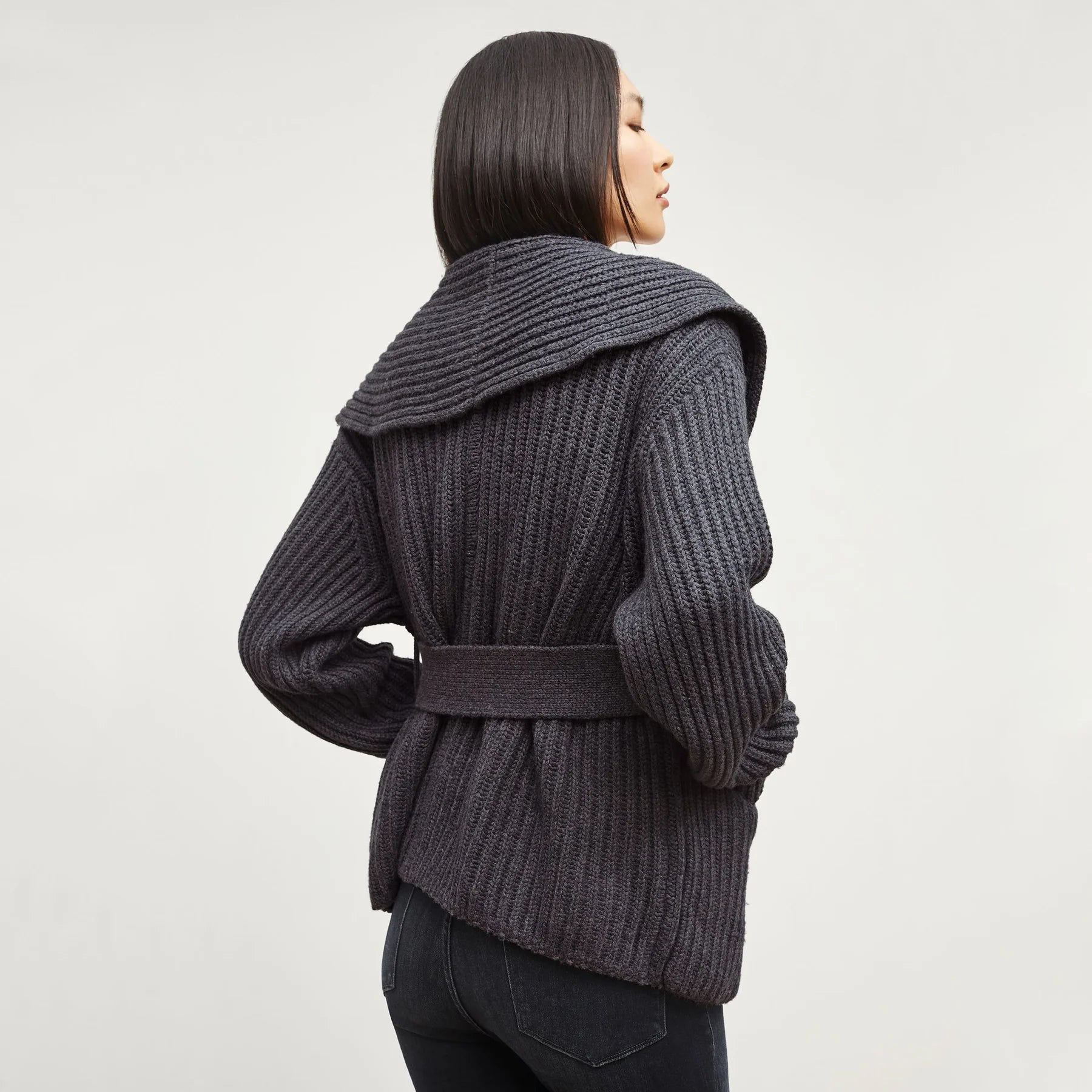 M.M. LaFleur Snyder Lush Cotton Merino Wool Knit Belted Jacket in Charcoal