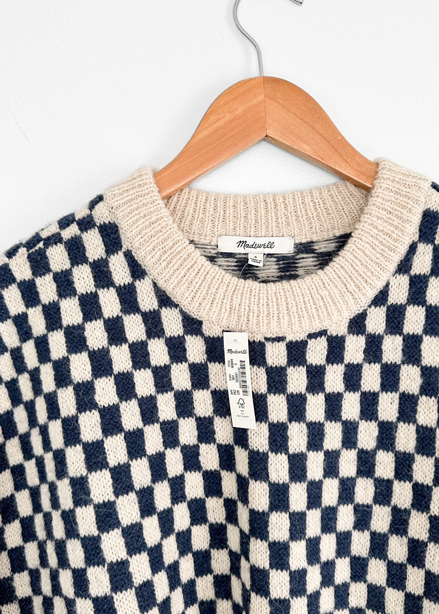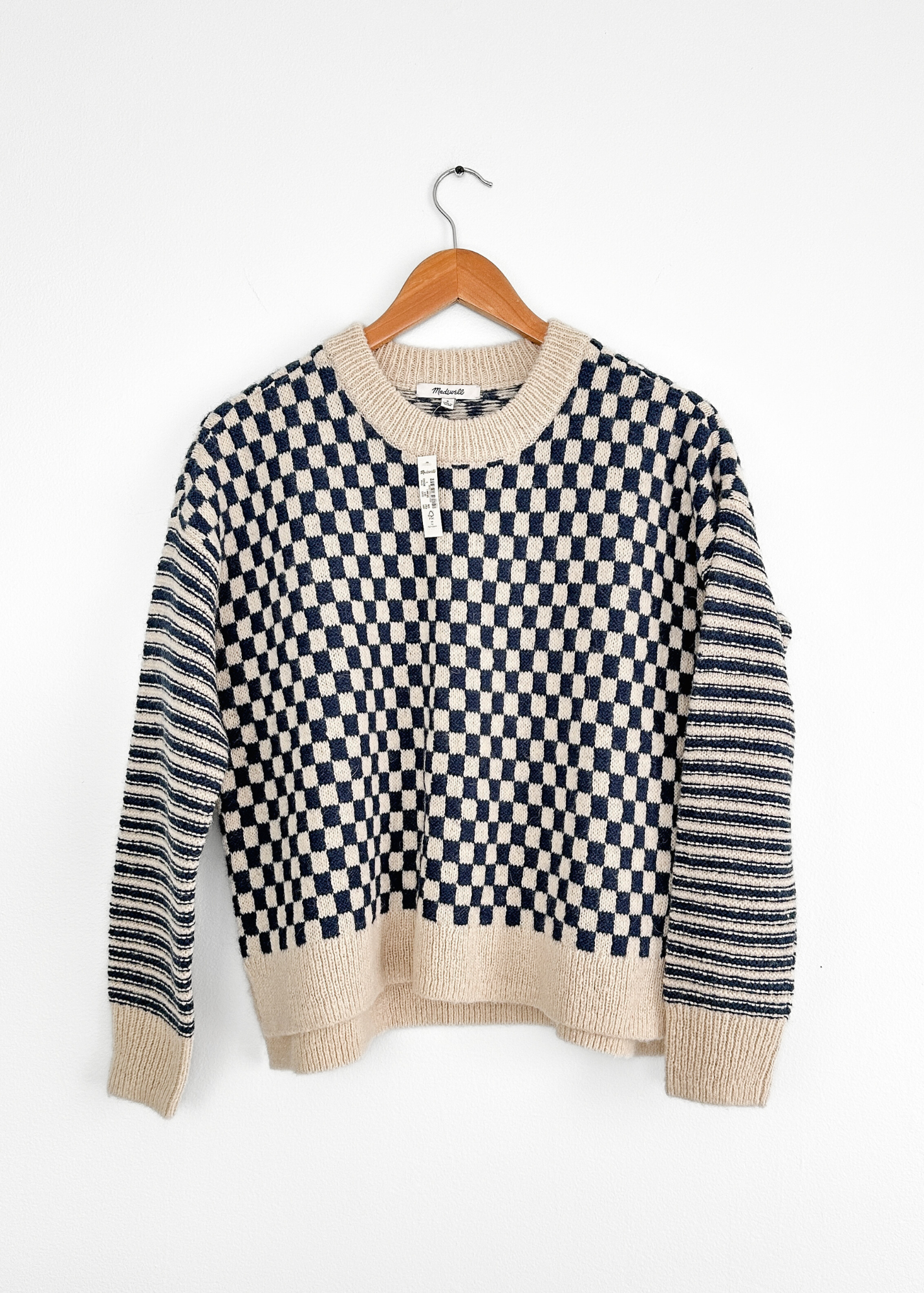 NEW Madwell Crewneck Sweater in Navy Checked Stripe (S)