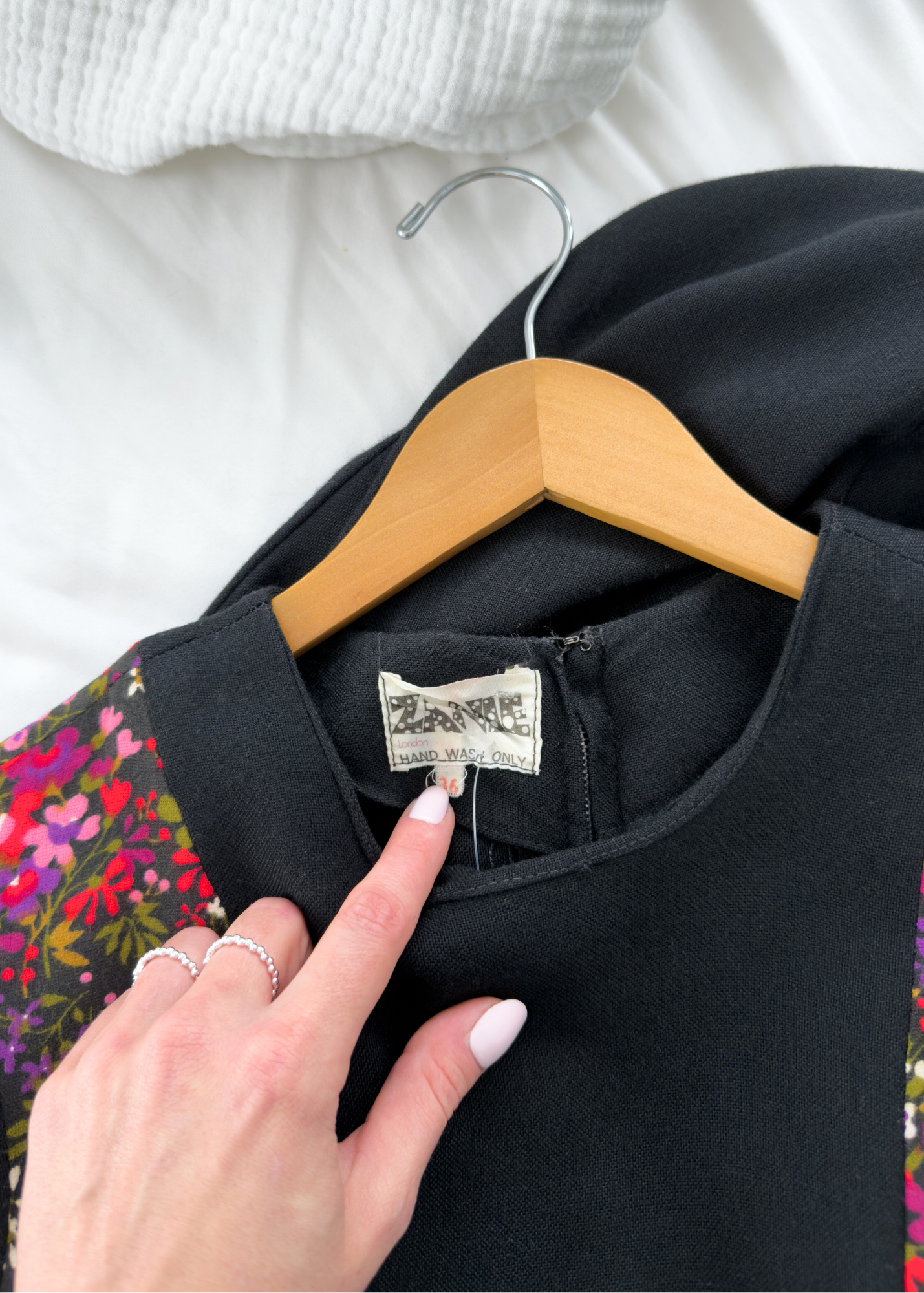 Vintage 60s 70s Zanie London Black & Floral Wrap Maxi Dress (vintage EU 36 or 2/4)