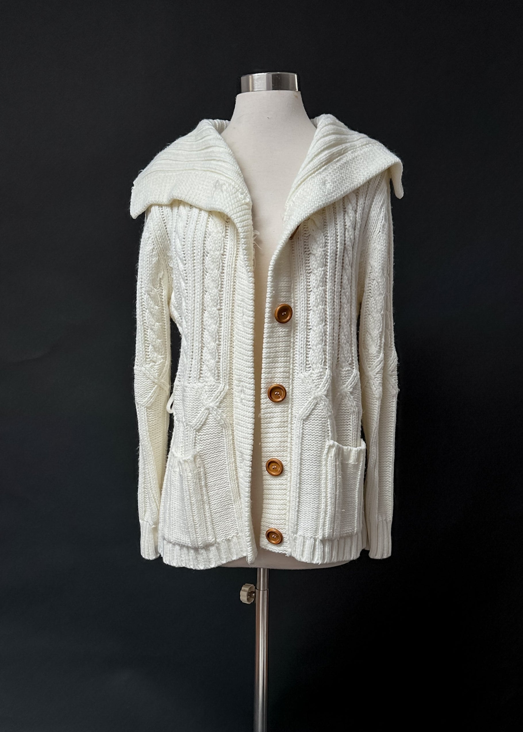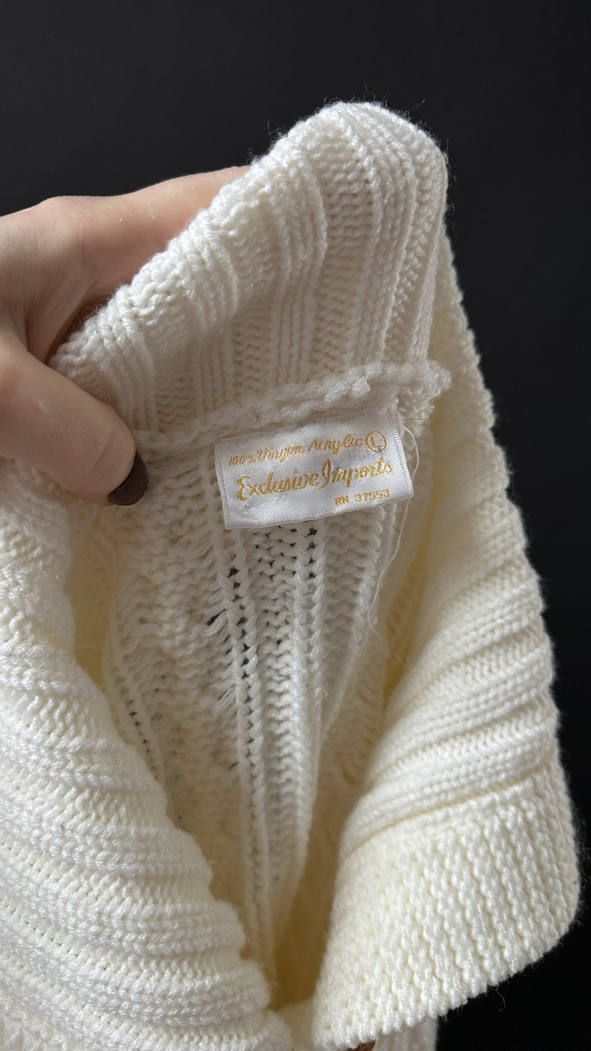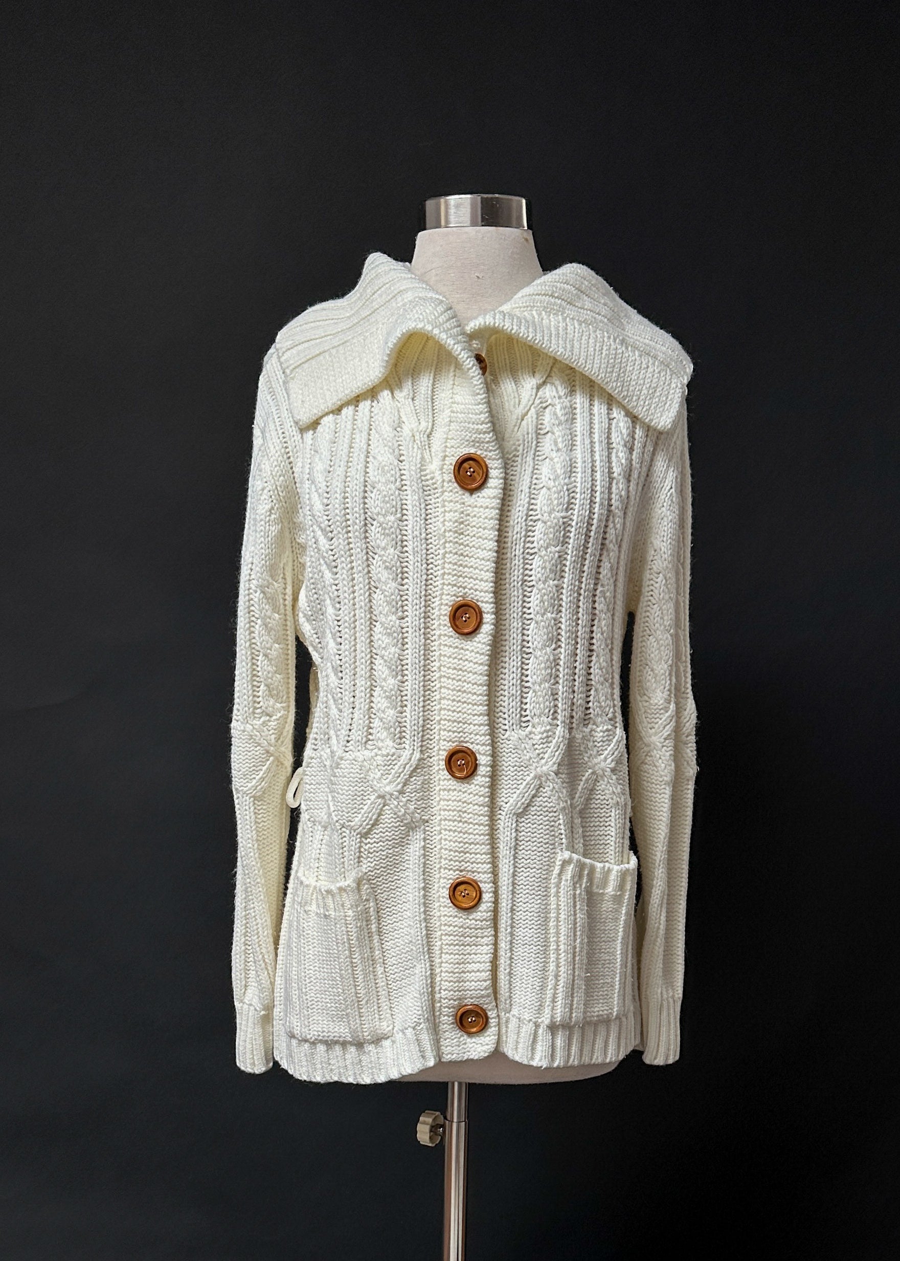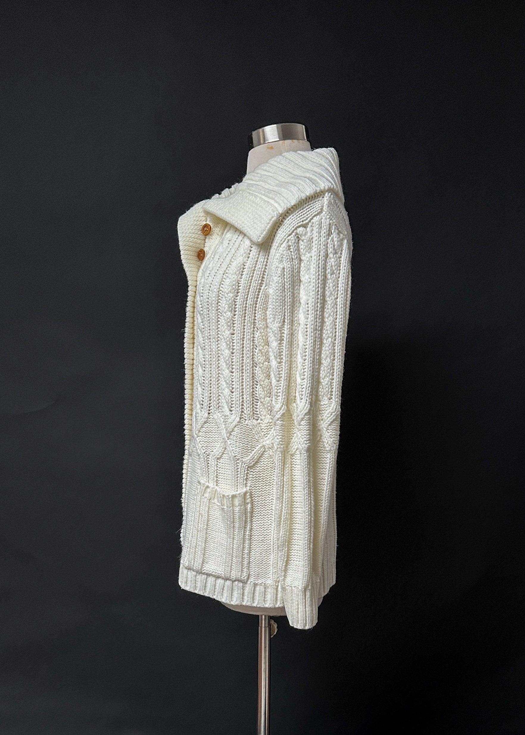 Vintage 70s Cream Folded Collar Thick Knit Cardigan (S/M)