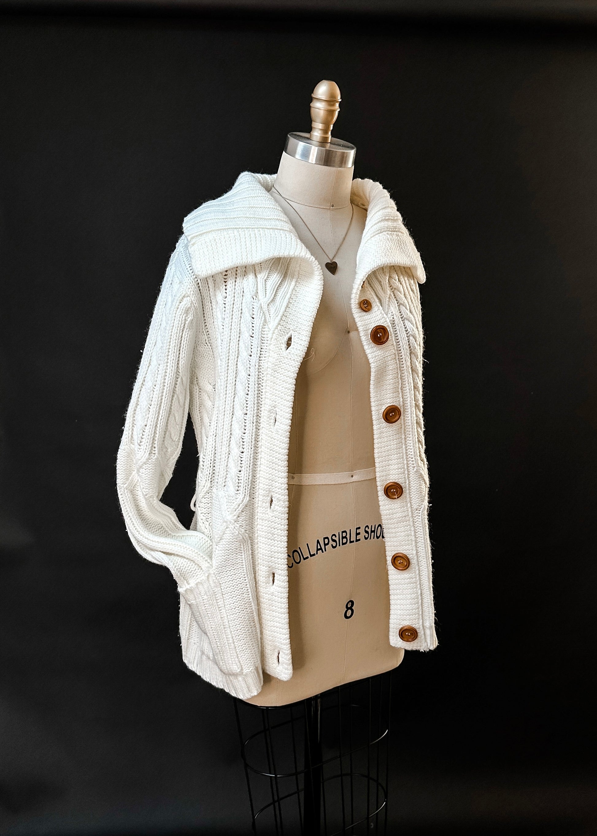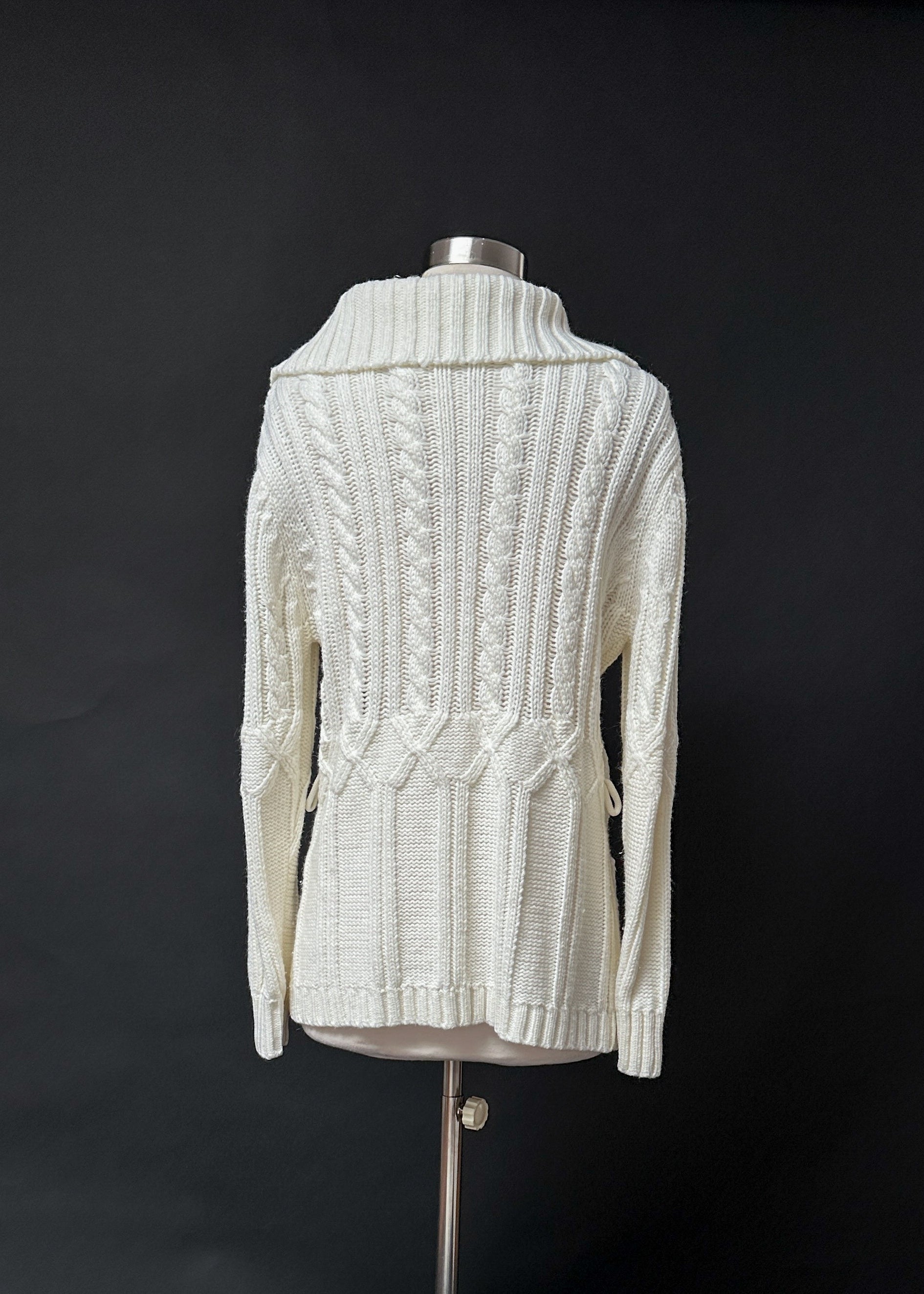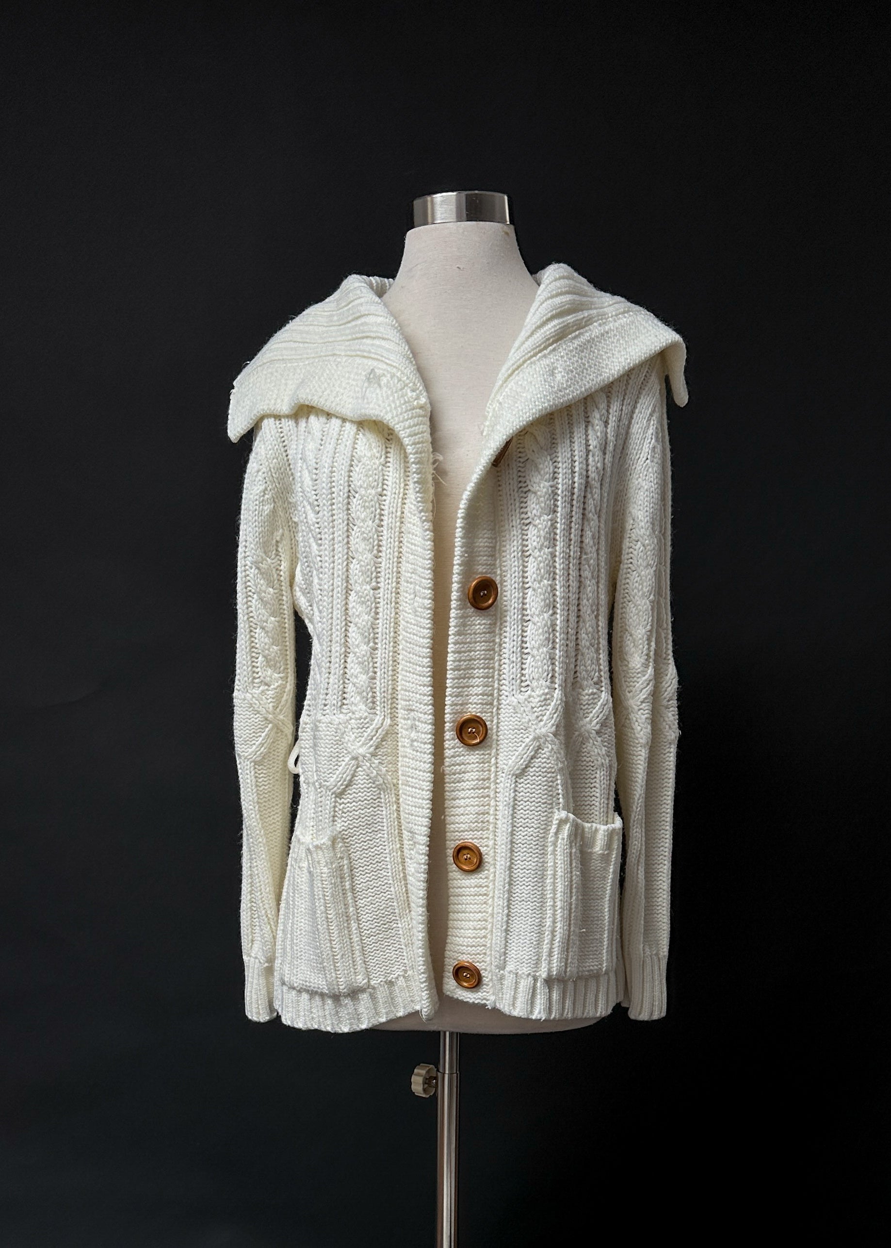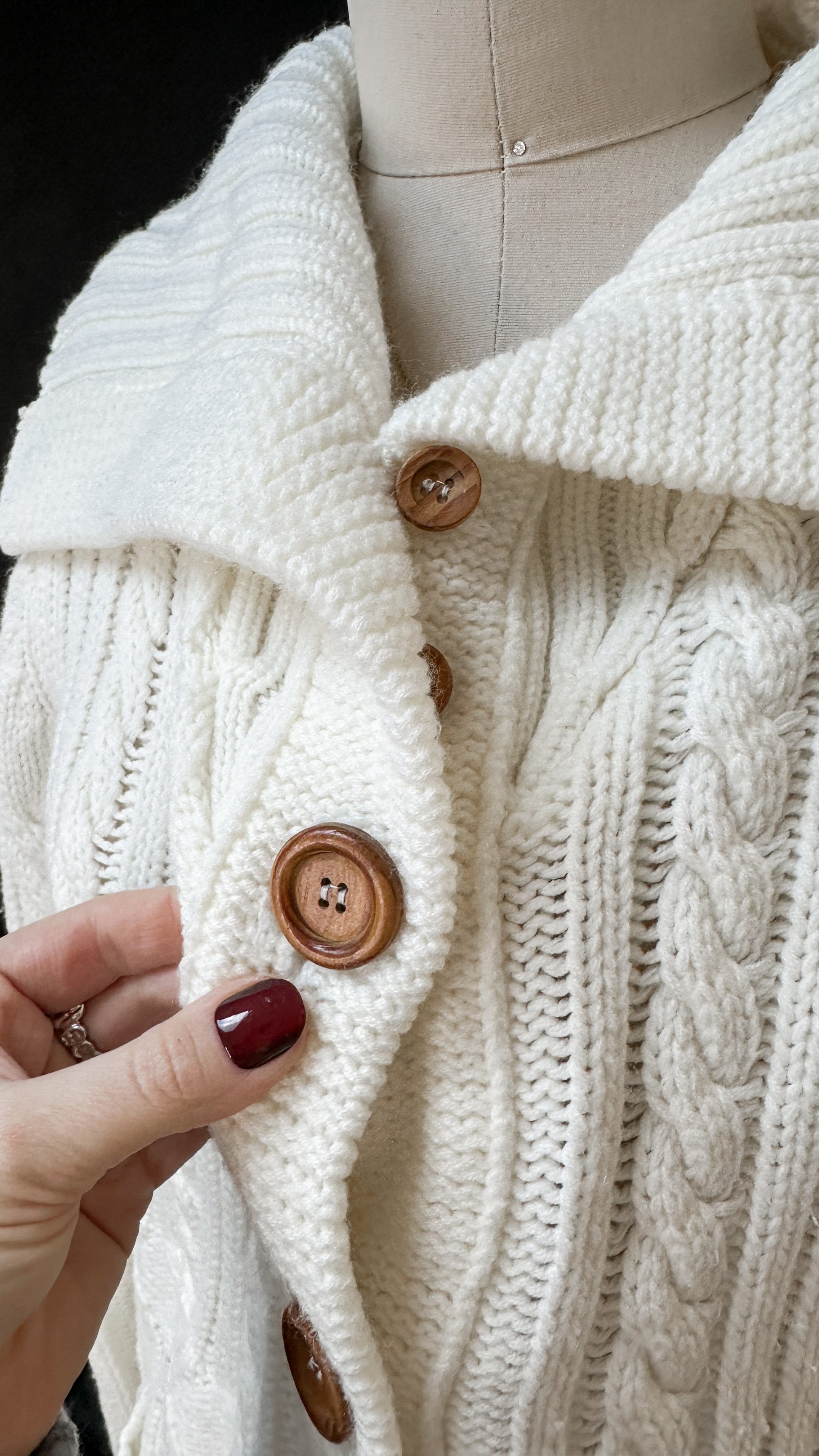 Vintage 70s Cream Folded Collar Thick Knit Cardigan (S/M)
