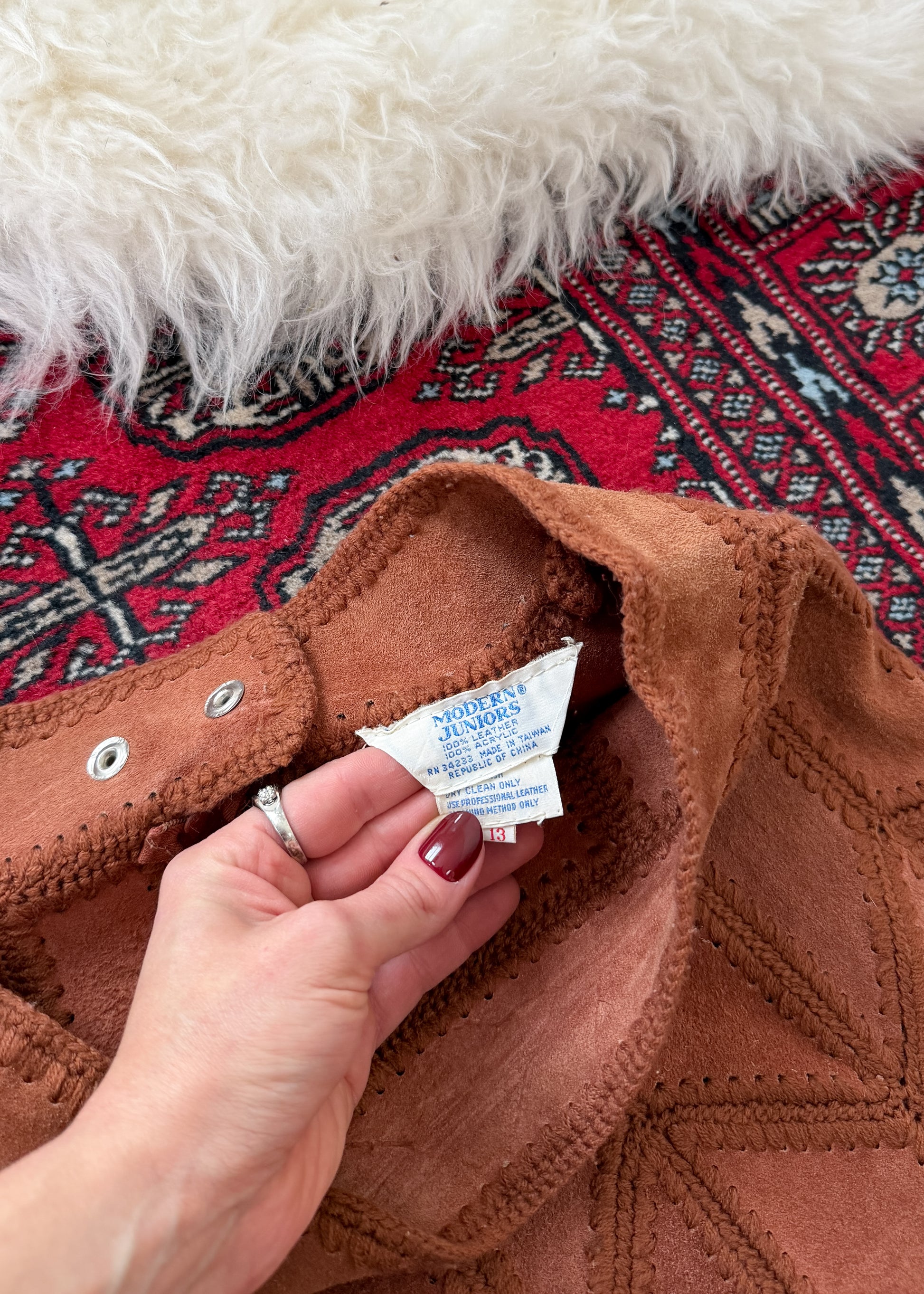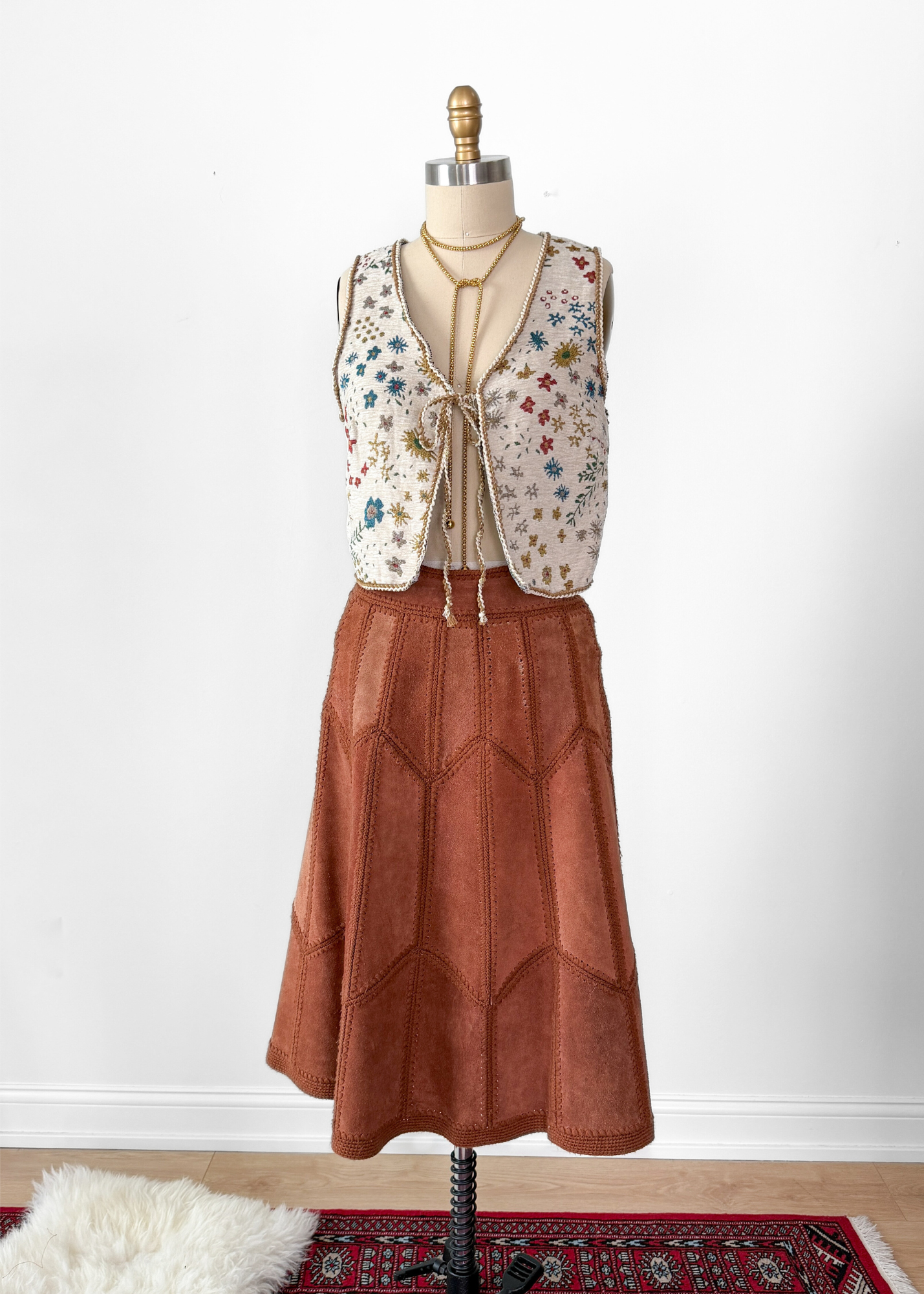 Vintage 70s Suede Leather Patchwork A-line Skirt (M or 8)