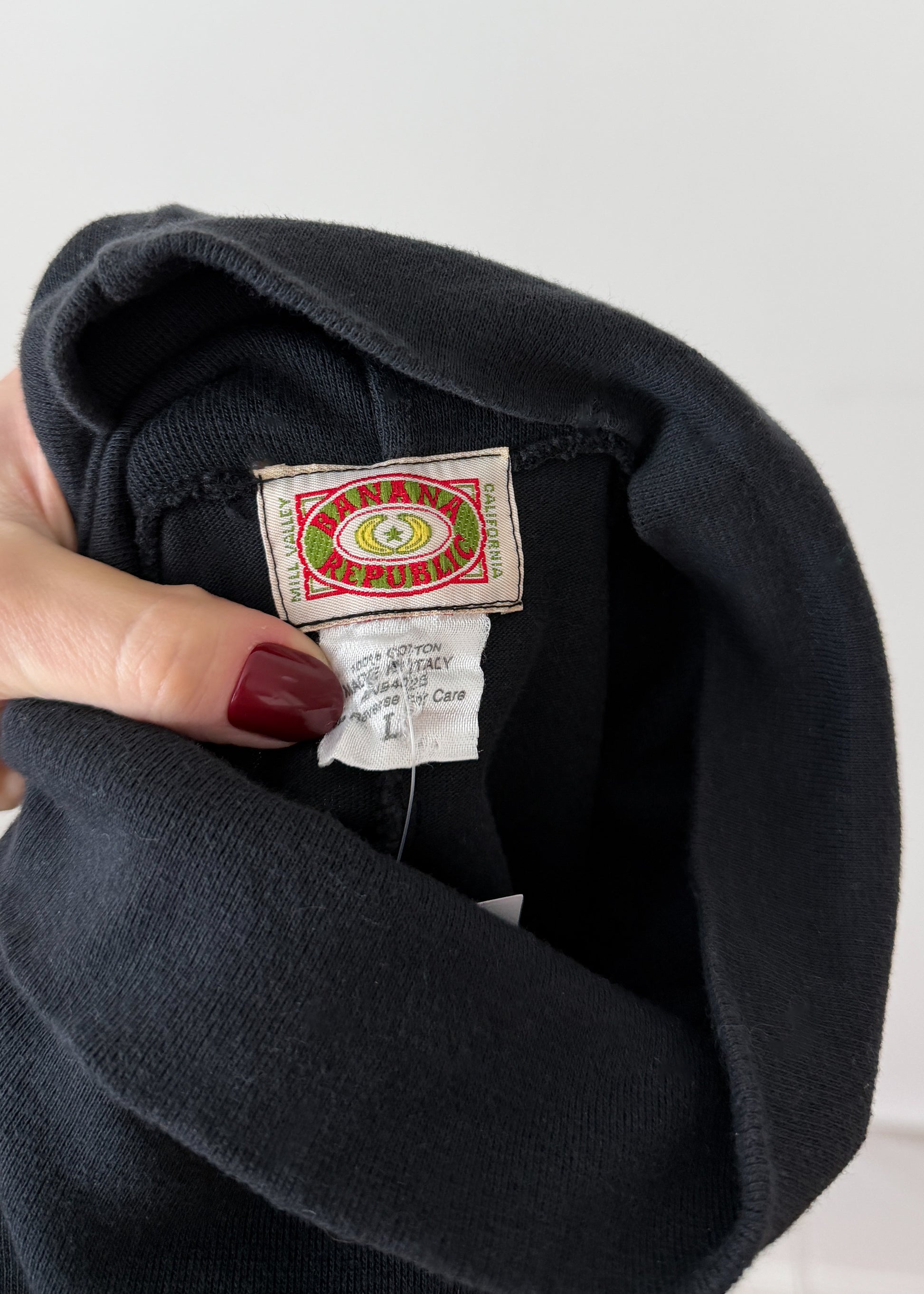 Vintage 80s Banana Republic 100% Cotton Knit Black Structured Shoulder Dress (L)