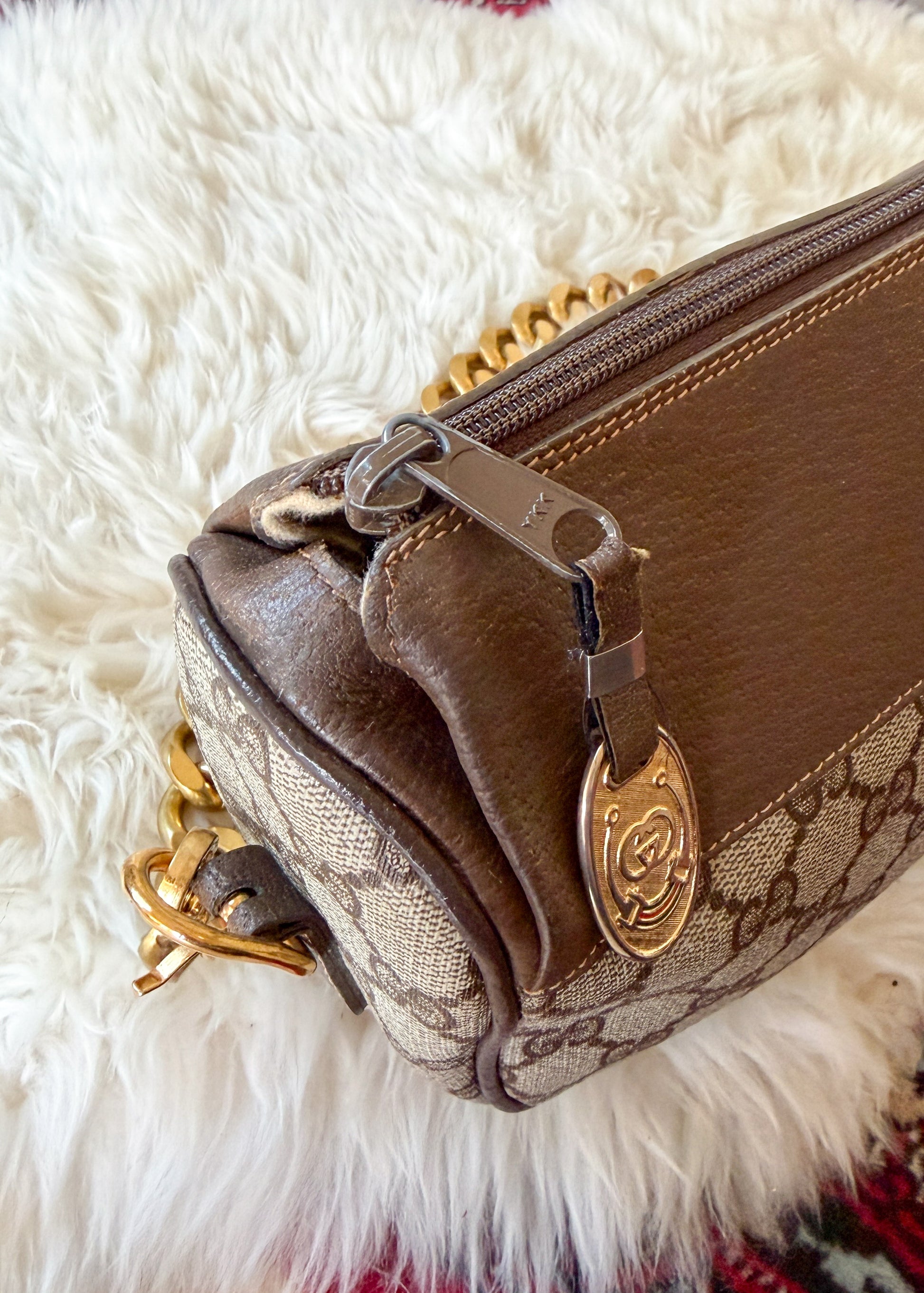 Vintage 80s Gucci Sherry Line GG Brown Shoulder Bag Purse + Gold Shoulder Chain