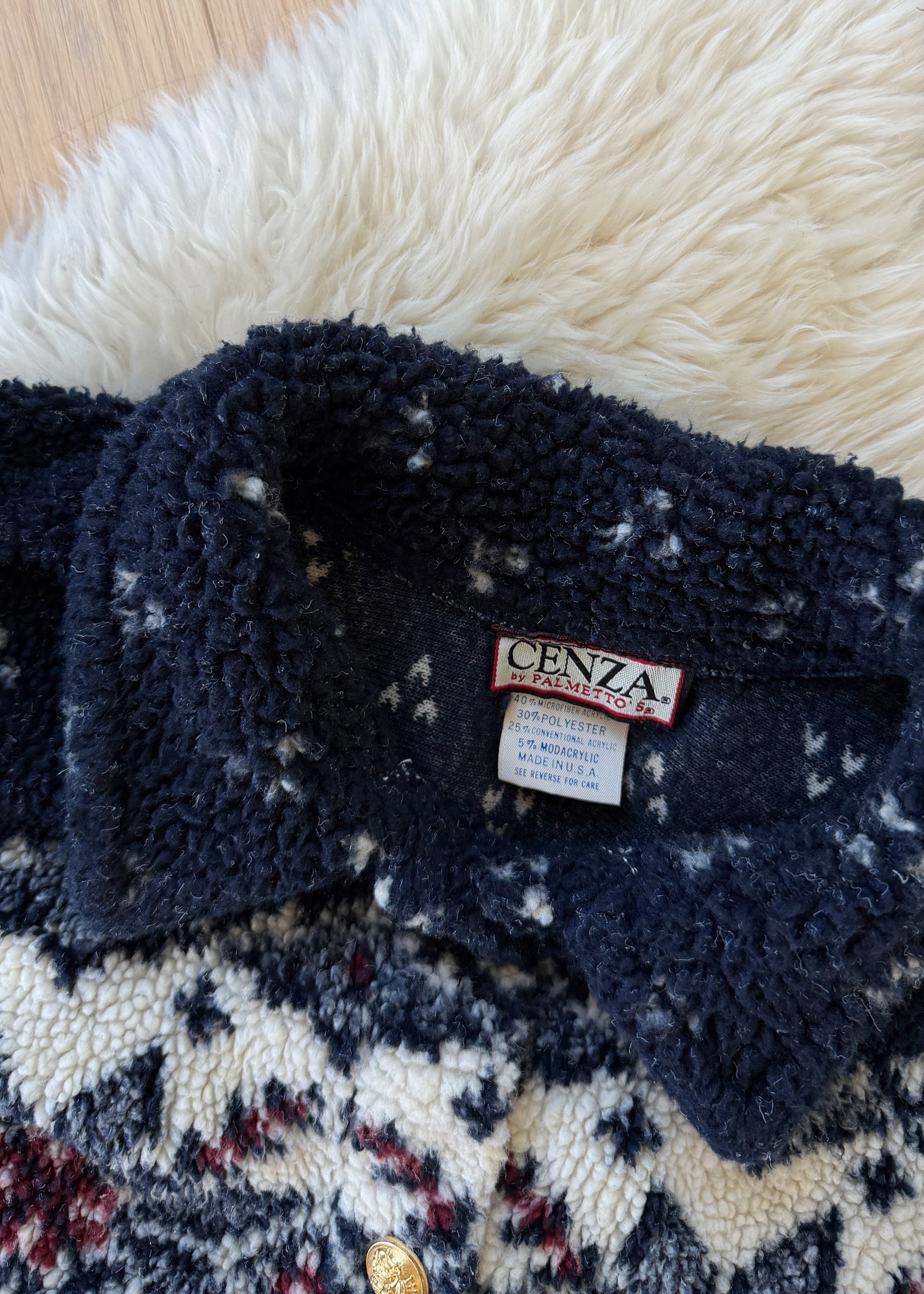 Vintage 90s Cena Navy Nordic Fuzzy Fleece Gold Button Cardigan Sweater (L)
