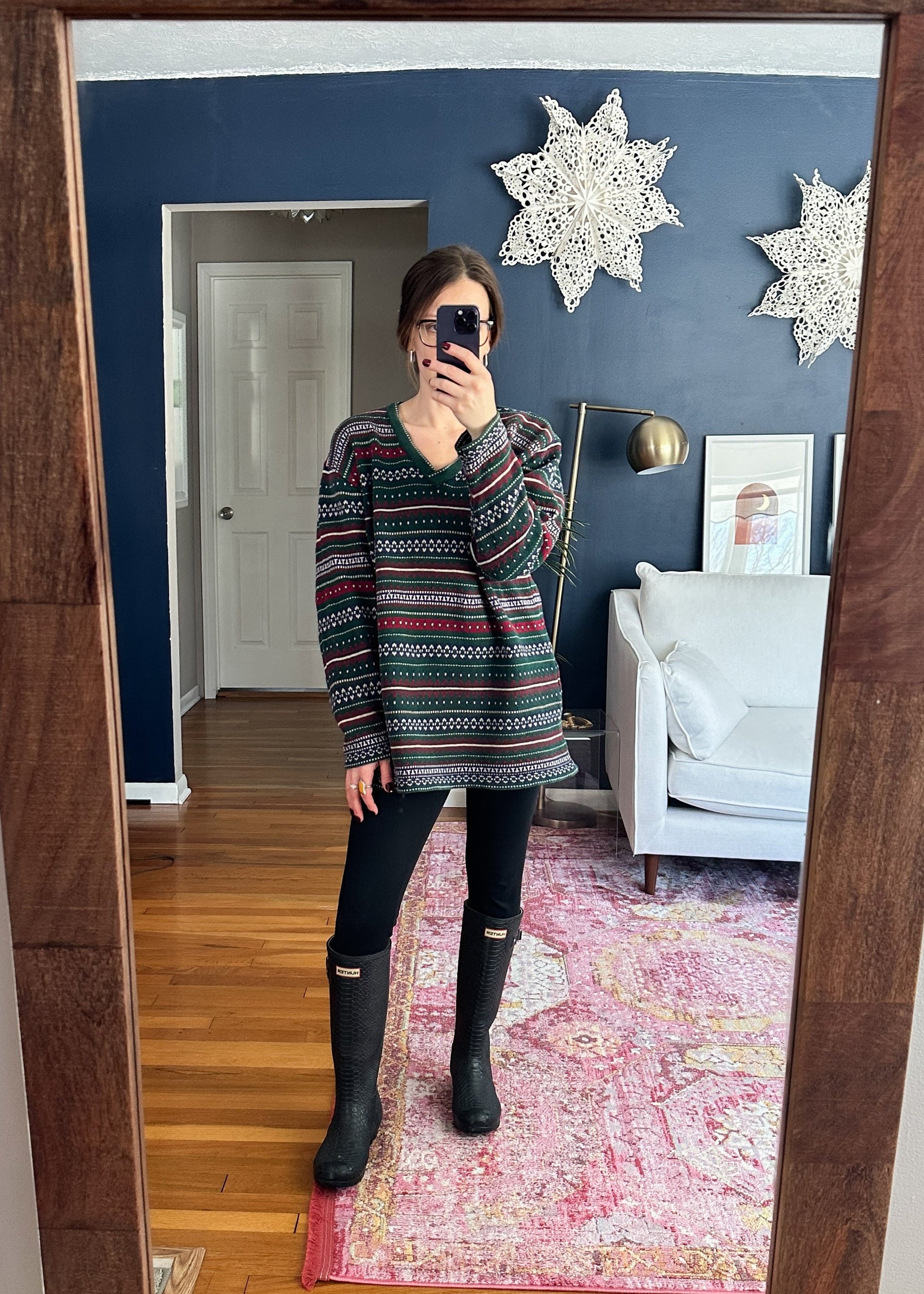 Size & Fit: label says size 2, but this fits like an oversized medium! (Shown on Caroline who is 5'4" and normally a medium or size 6.)