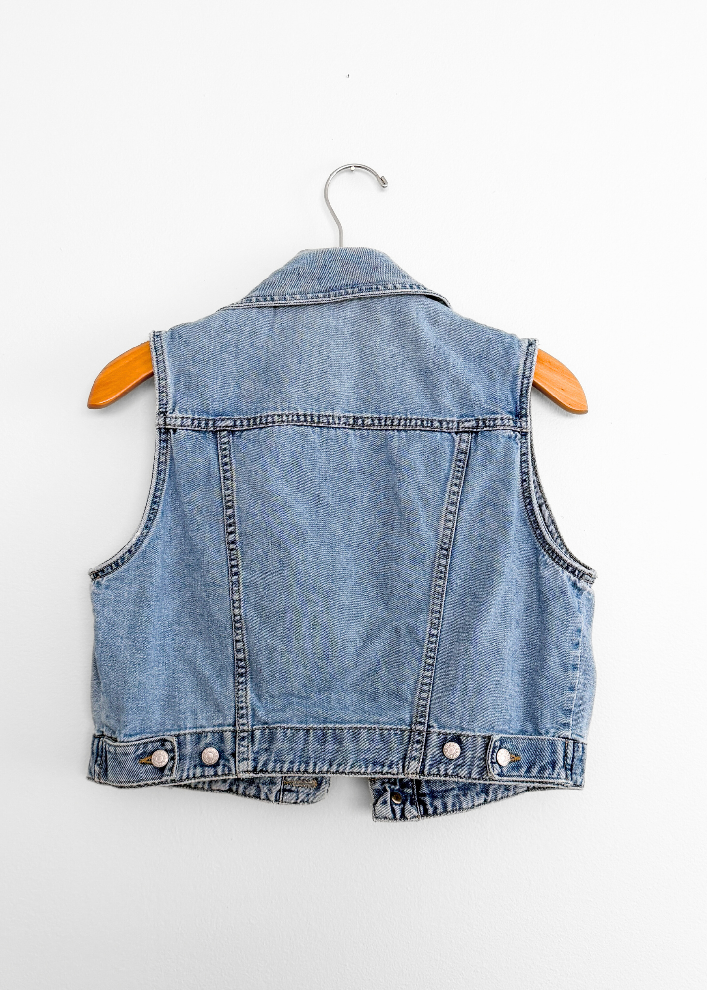 Vintage 90s Guess Denim Cropped Medium Wash Vest (M)