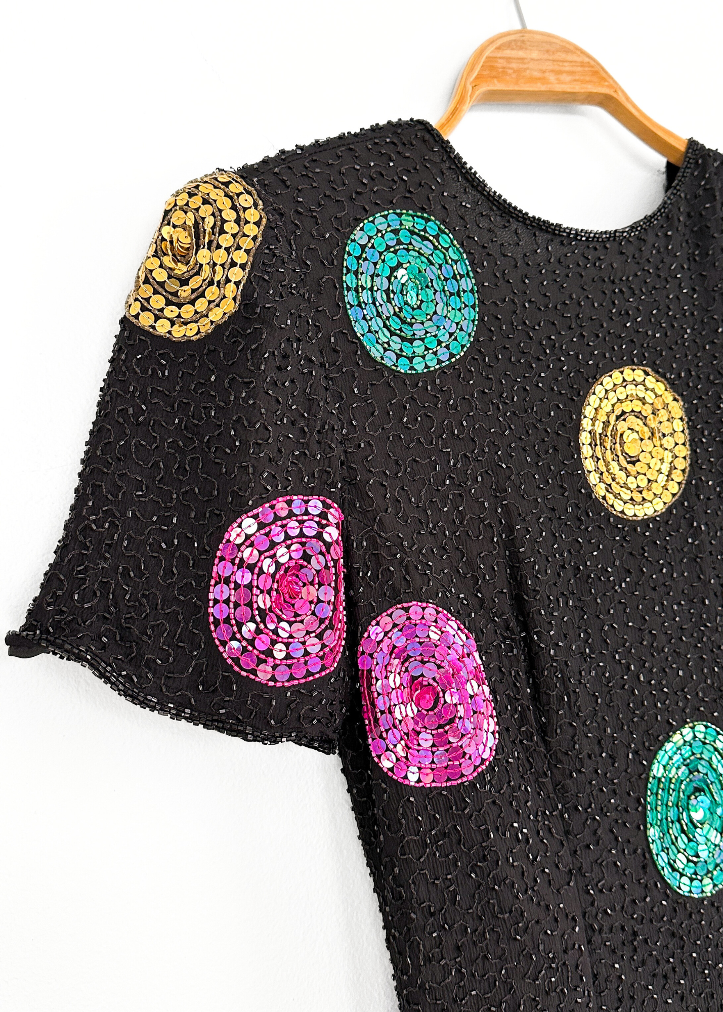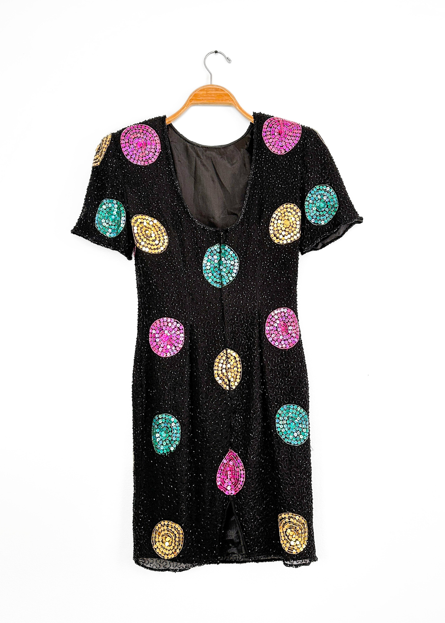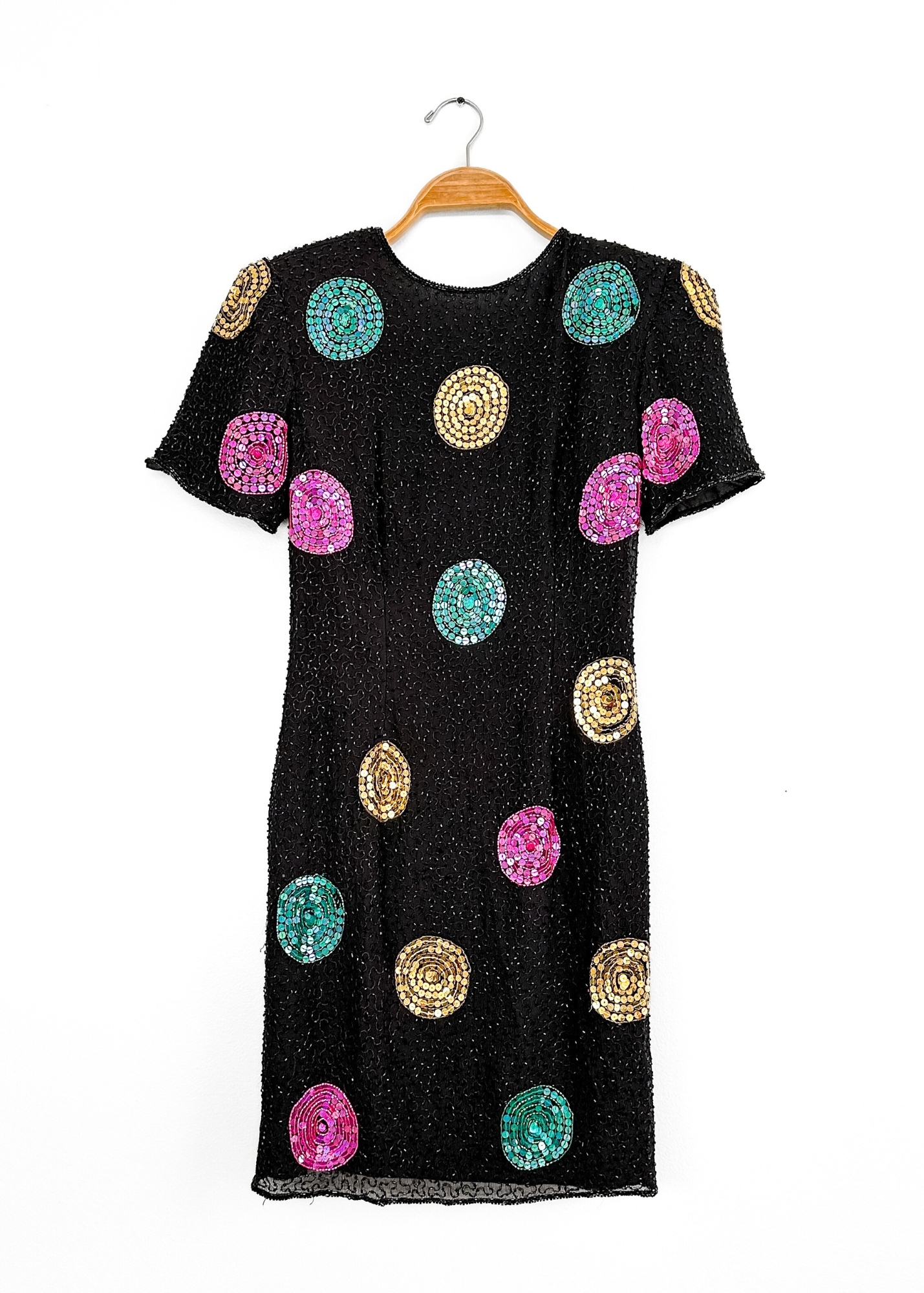 Vintage 90s Leslie Fay Silk and Sequin Polka Dot Mini Dress (6P)
