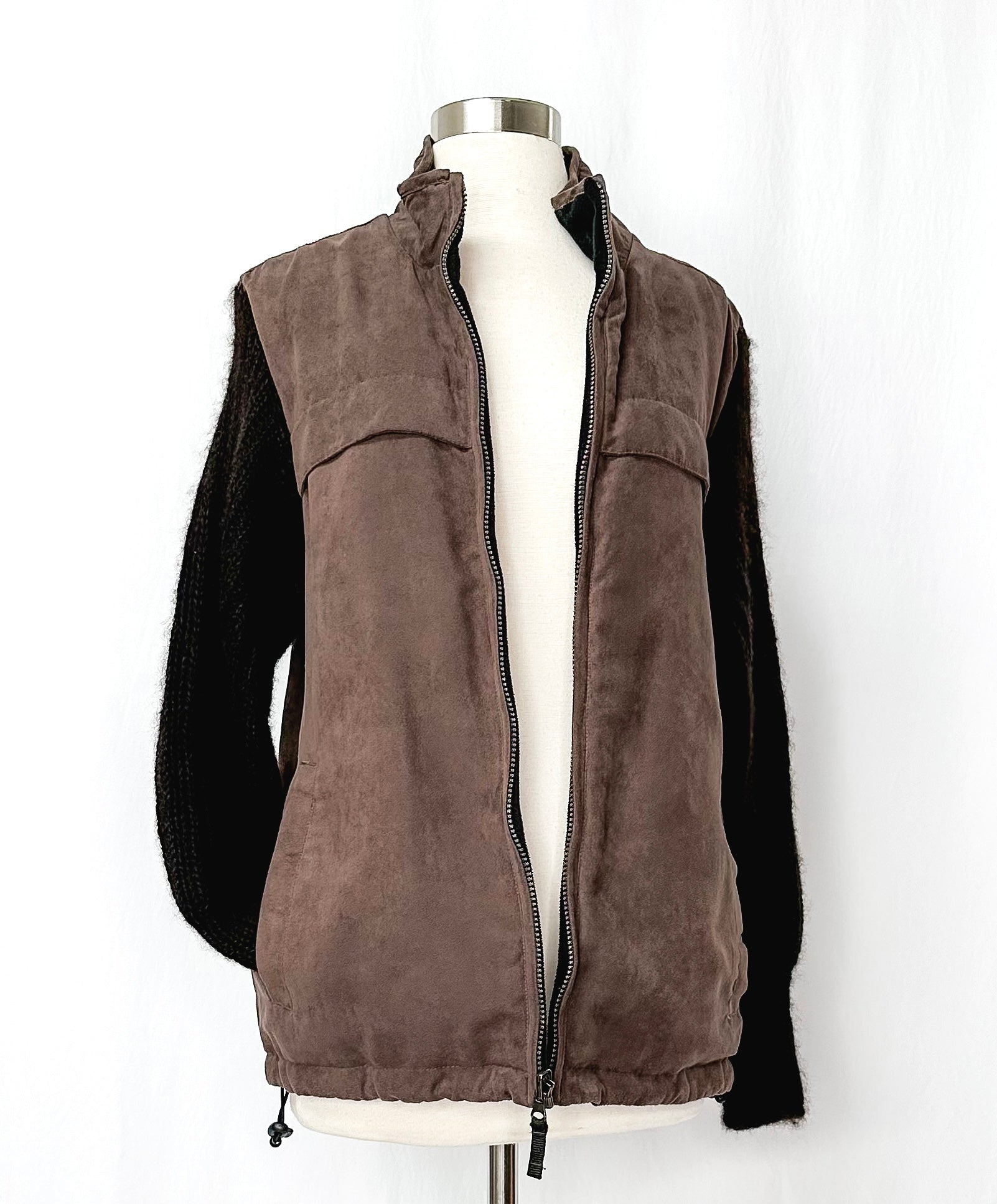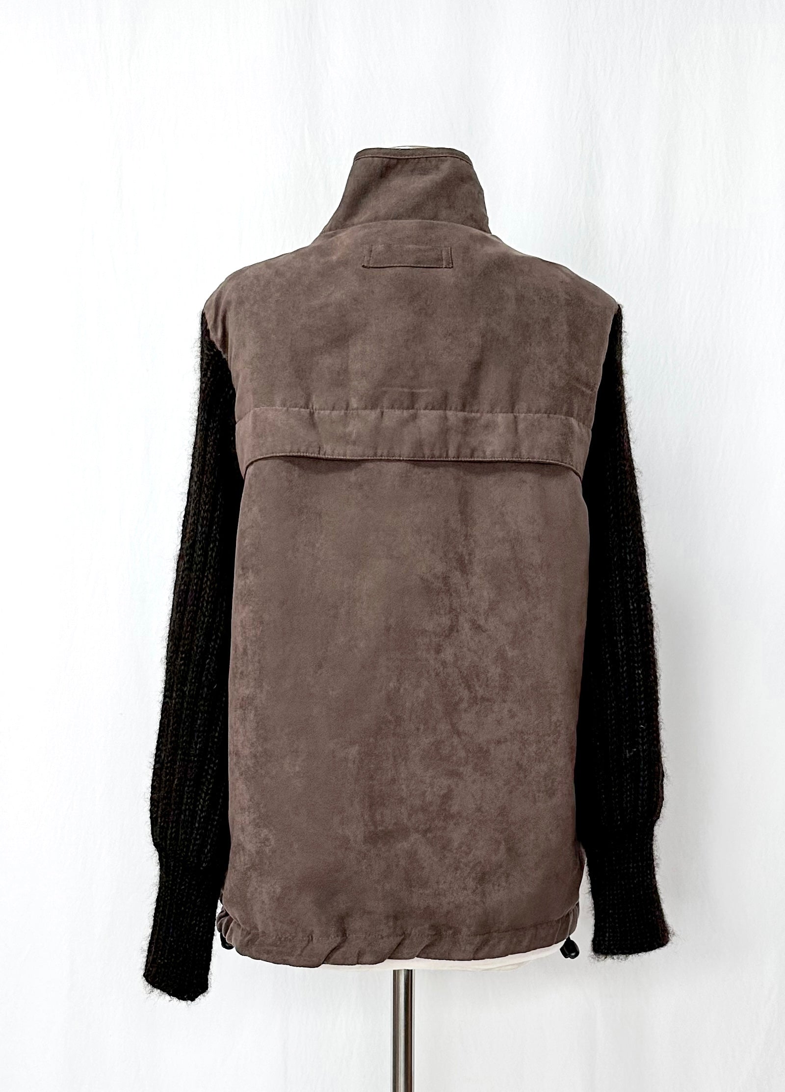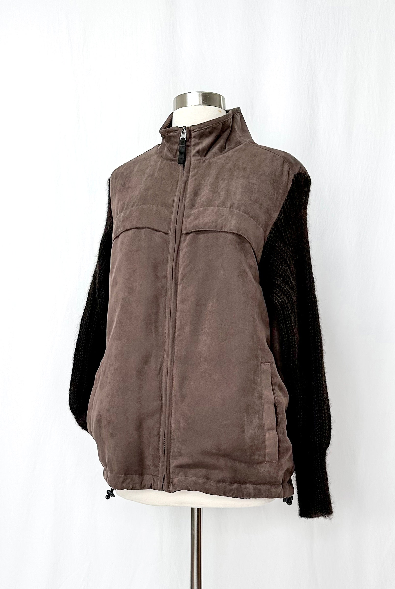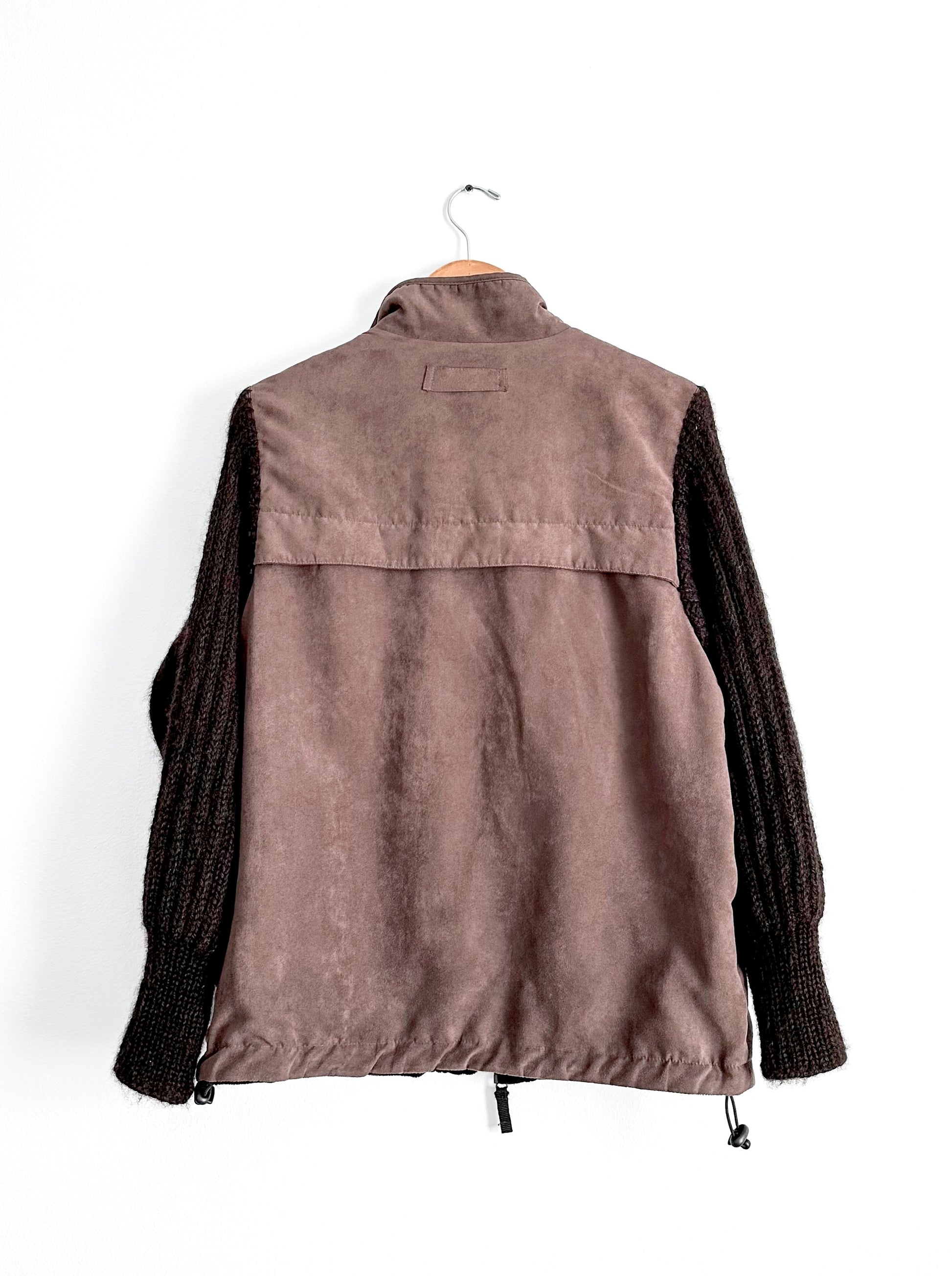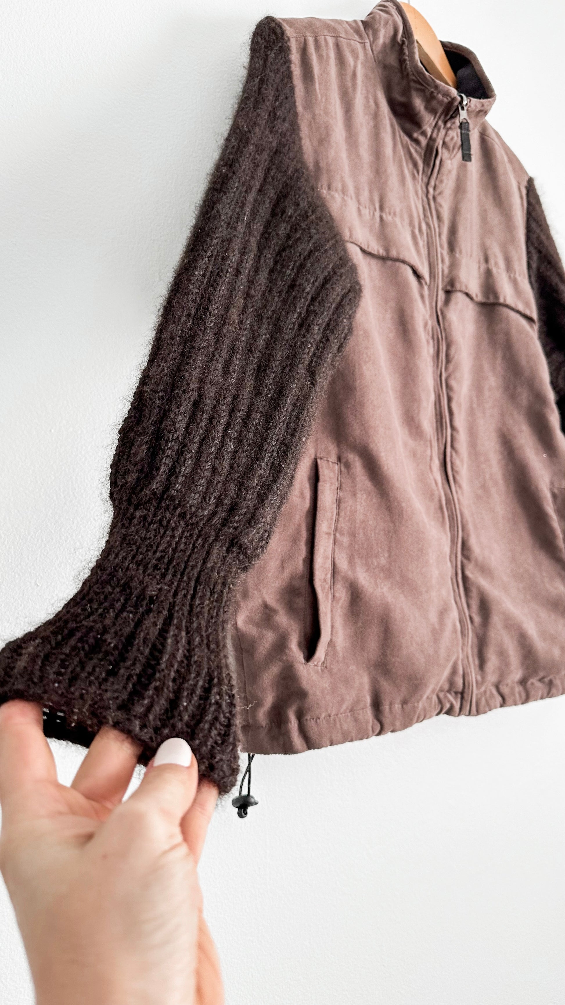 Vintage Weatherproof Chocolate Brown Knit Sleeve Contrast Jacket (M)